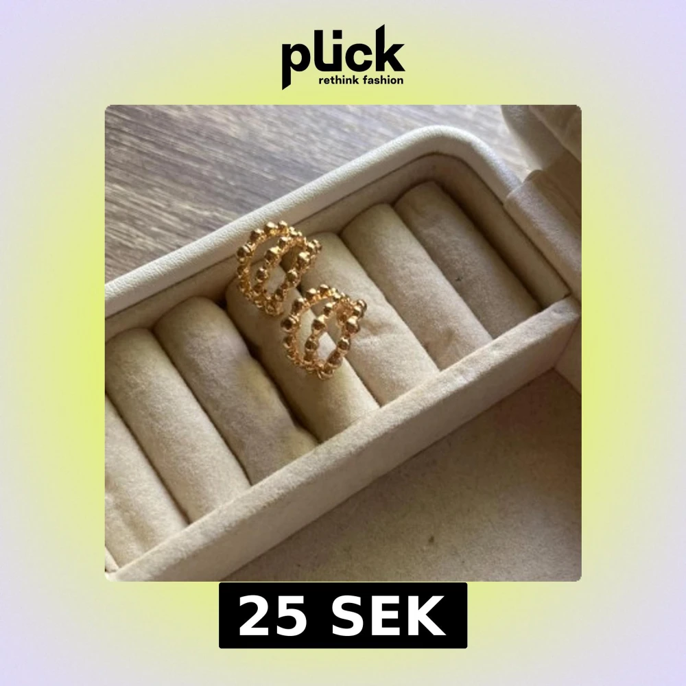 Priset kan diskuteras ! Säljer två par örhängen i inte ekta guldton. Ena paret är chunky hoops med slät, blank yta och rund form. Det andra paret har en cool, bubblig design med små kulor som bildar en öppen ring. Perfekta för att mixa och matcha för en trendig look.