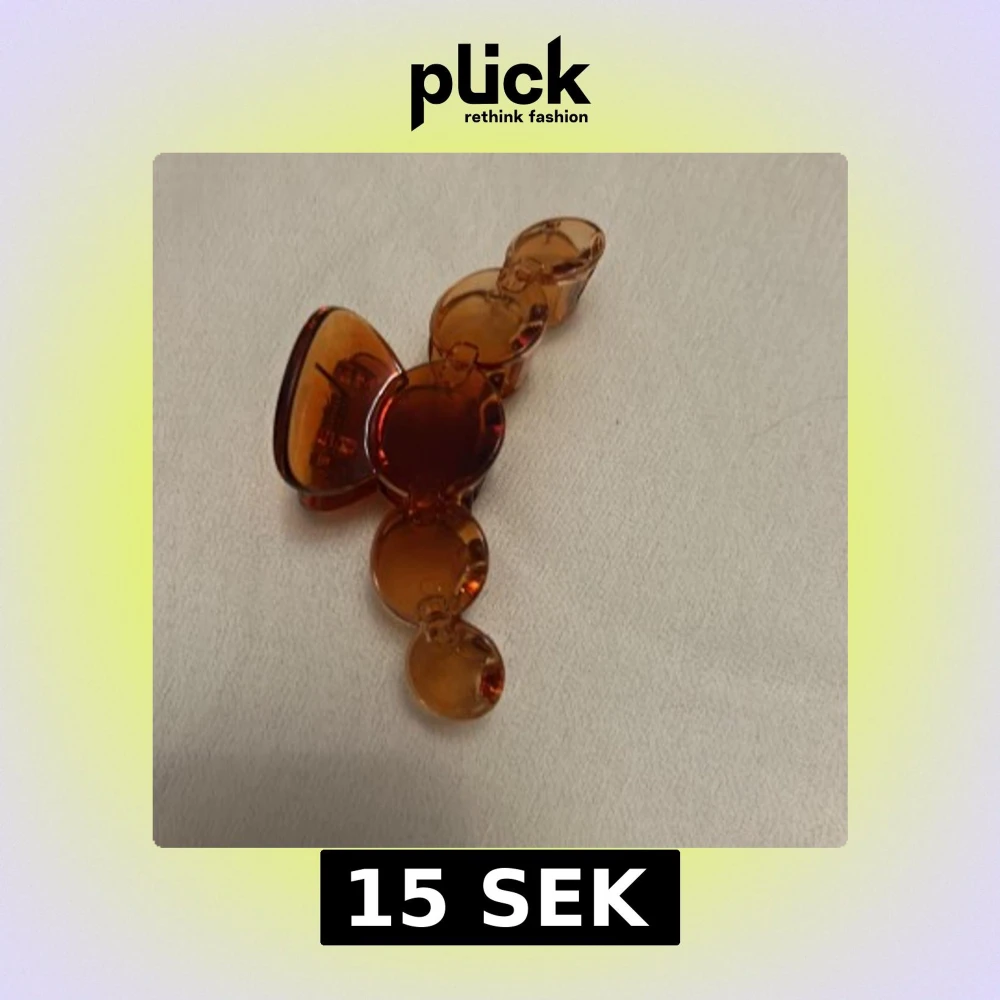 Snygg hårklämma i transparent brun plast med rundade former. Perfekt accessoar för att snabbt fixa frisyren och ge en cool retrovibe. Klämman har flera cirkelformade sektioner och en stadig metallfjäder för bra grepp.