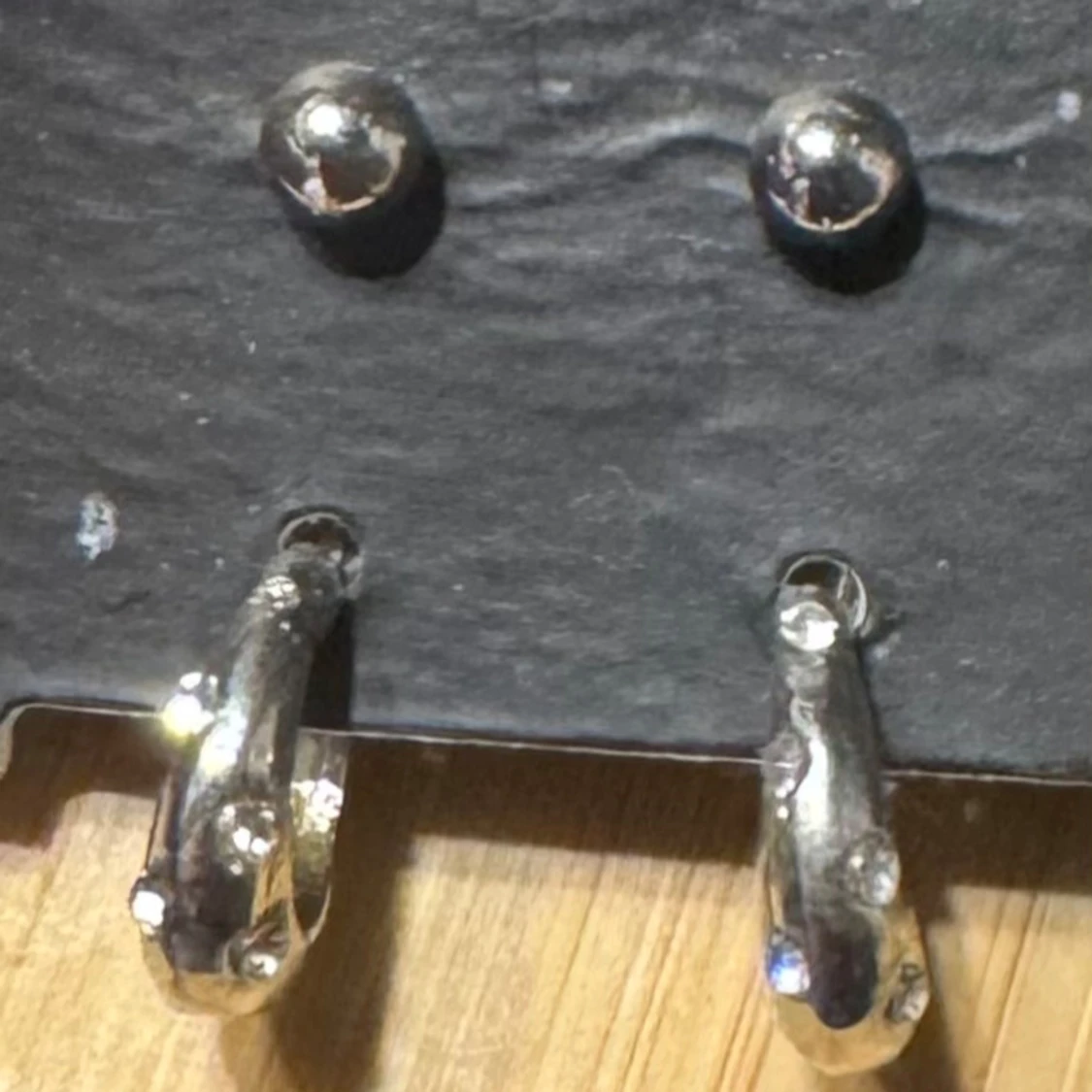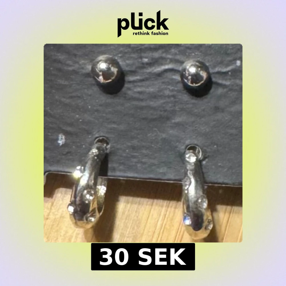 Säljer ett par coola silvriga örhängen i rund form med små gnistrande stenar. De har en chunky design och är perfekta för att ge din look lite extra edge. Passar dig som gillar statement-smycken och vill sticka ut.