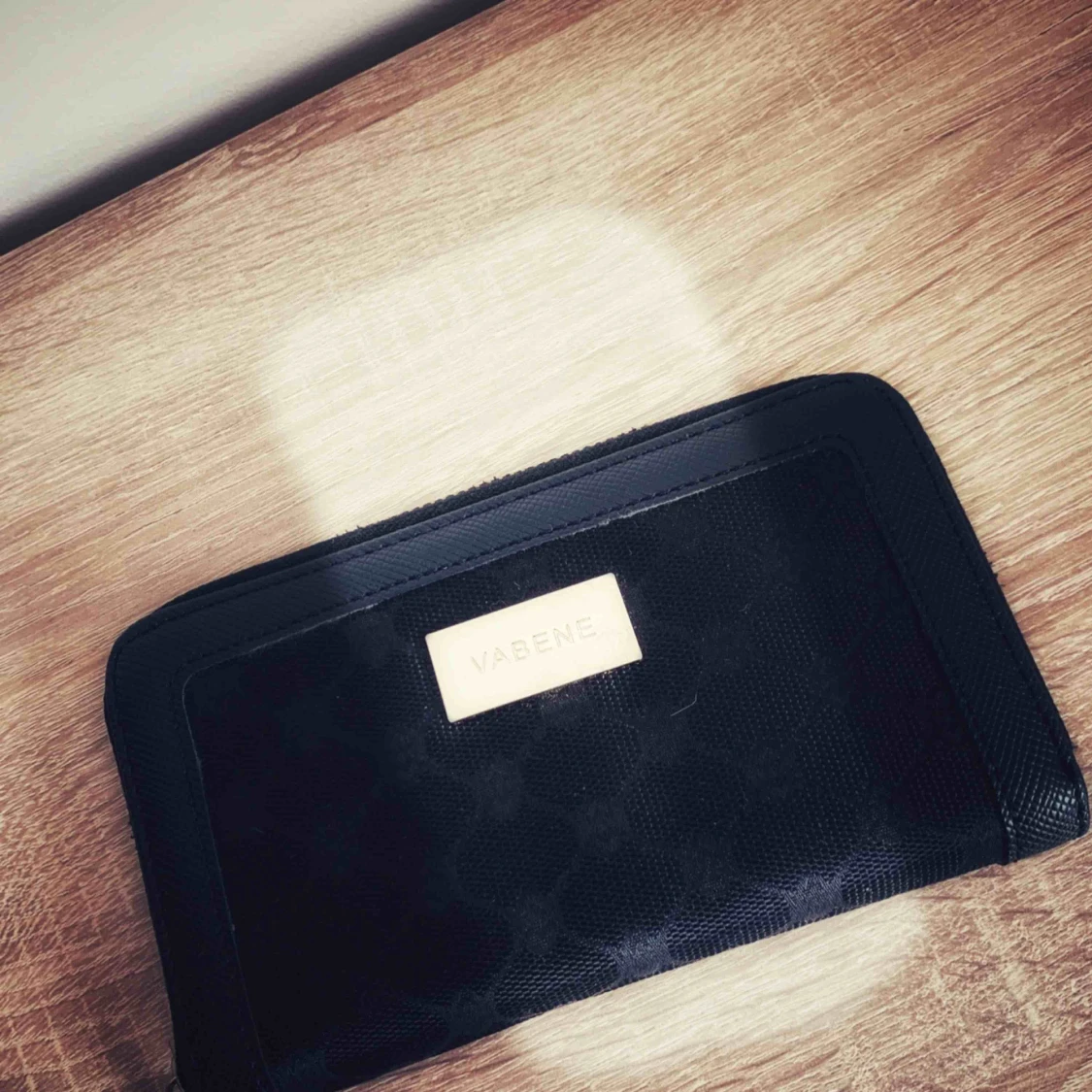 Plånbok i svart tyg med gulddetaljer med flera fack som försluts med dragkedja, använd ett fåtal gånger 🍂🍁