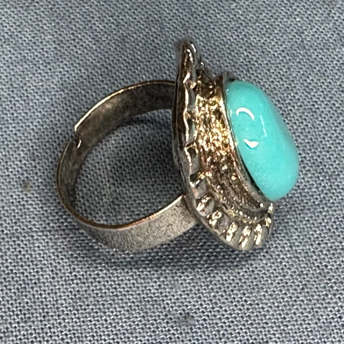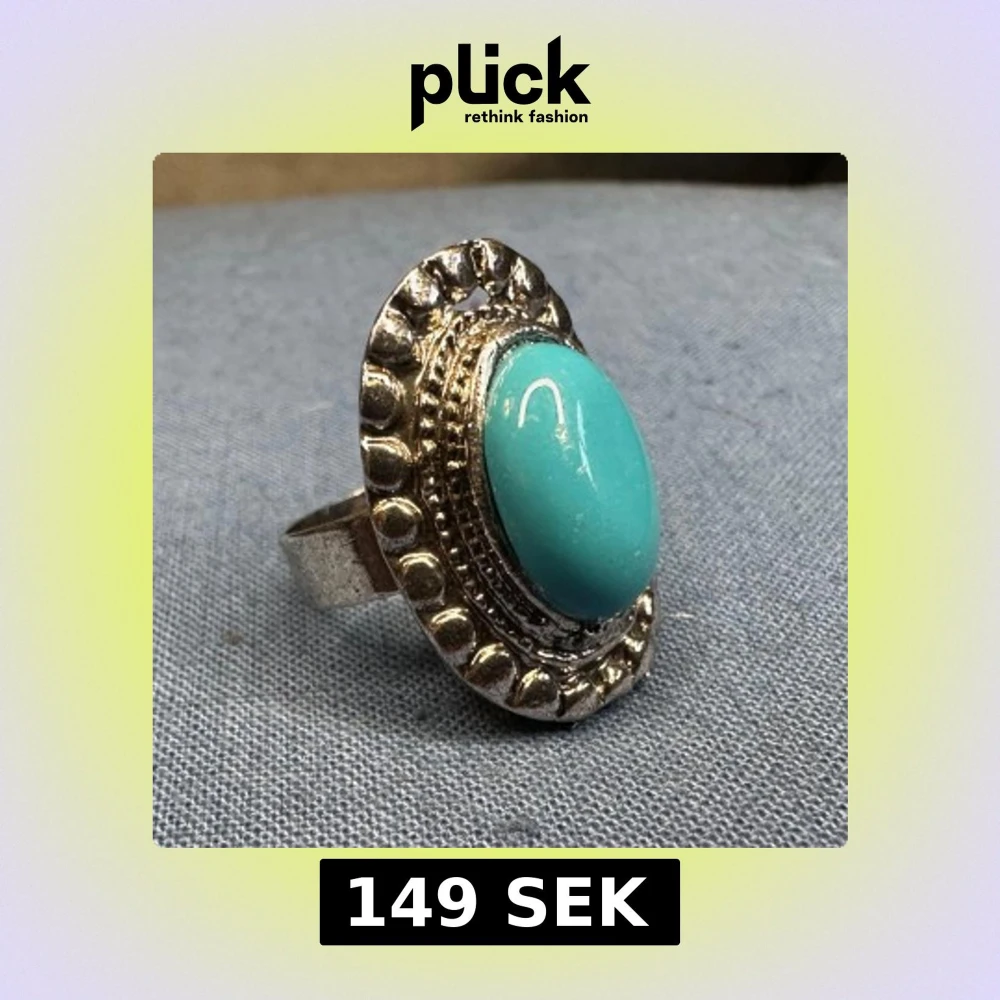 Fantastisk vintage silverring med en vacker turkos ädelsten! Justerbar storlek för perfekt passform. Turkos är en sten med djup symbolik – den sägs ge skydd, stärka intuition och skapa balans i livet. I många kulturer har den använts som en amulett för lycka och harmoni. Mått: • Höjd: 2,7 cm • Bredd: 2 cm • Innerdiameter: 1,7 cm (justerbar) Perfekt för dig som älskar vintage, boho eller spirituell estetik! Skickas väl paketerad.
