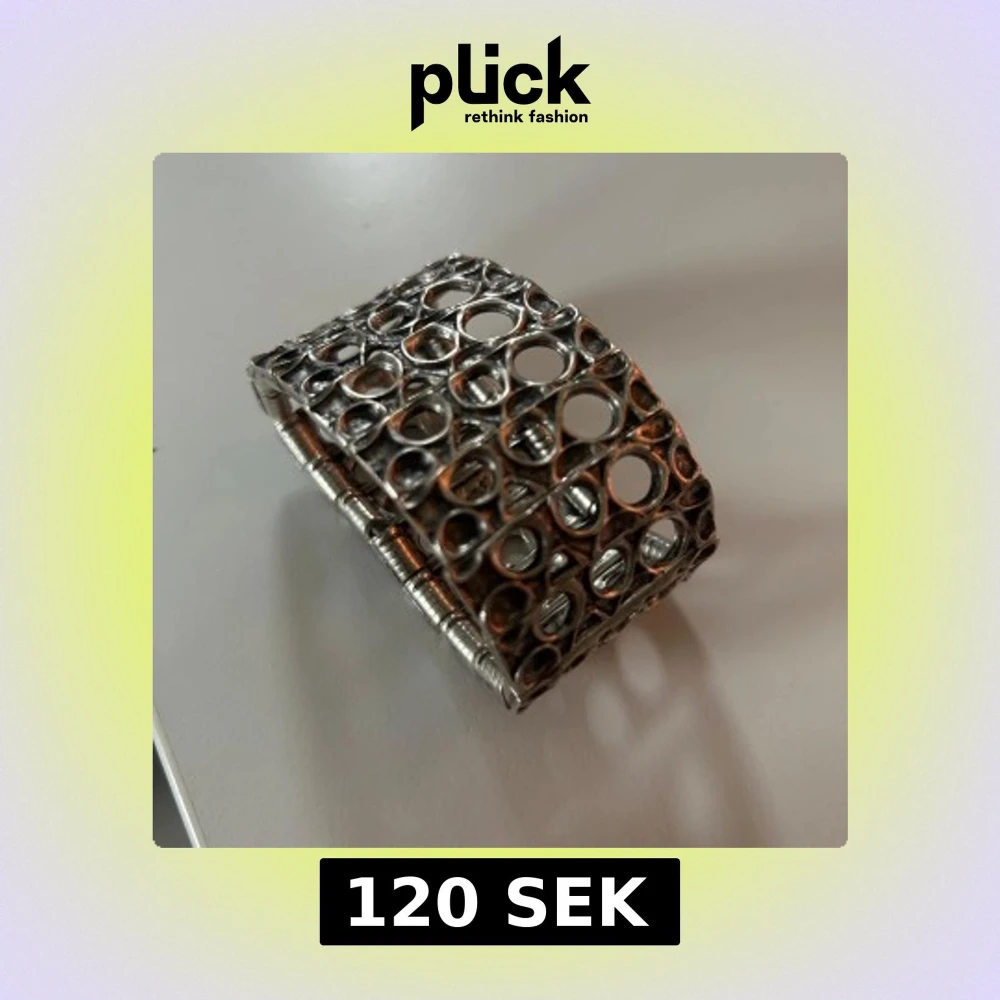 Unikt och brett armband i silverfärg med coolt cirkelmönster och industriell känsla. Armbandet har en öppen, luftig design med många olika stora hål och detaljerade kanter. Perfekt statement piece för dig som gillar att sticka ut.