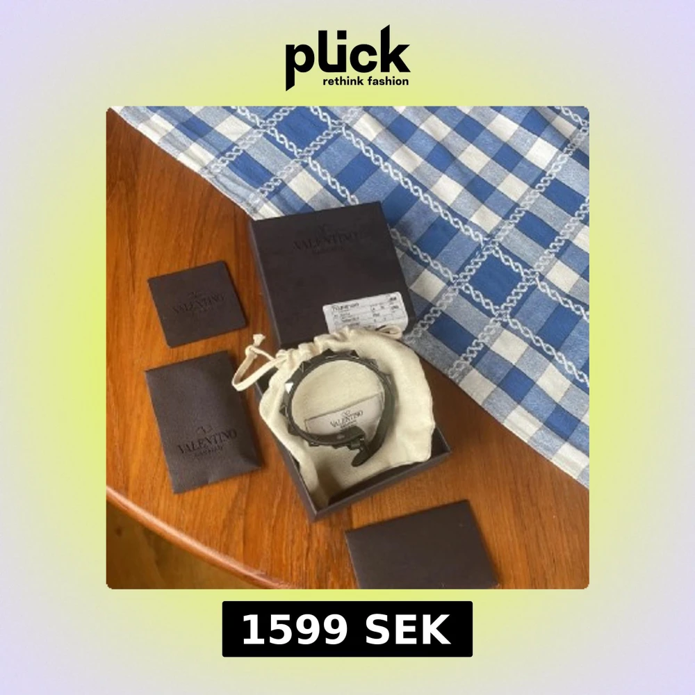 Säljer ett snyggt armband från Valentino i grönt skinn med silvriga pyramidformade nitar. Armbandet har justerbar längd och levereras i originalpåse och ask. Aldrig använt, inget typ av slitage överhuvudtaget.