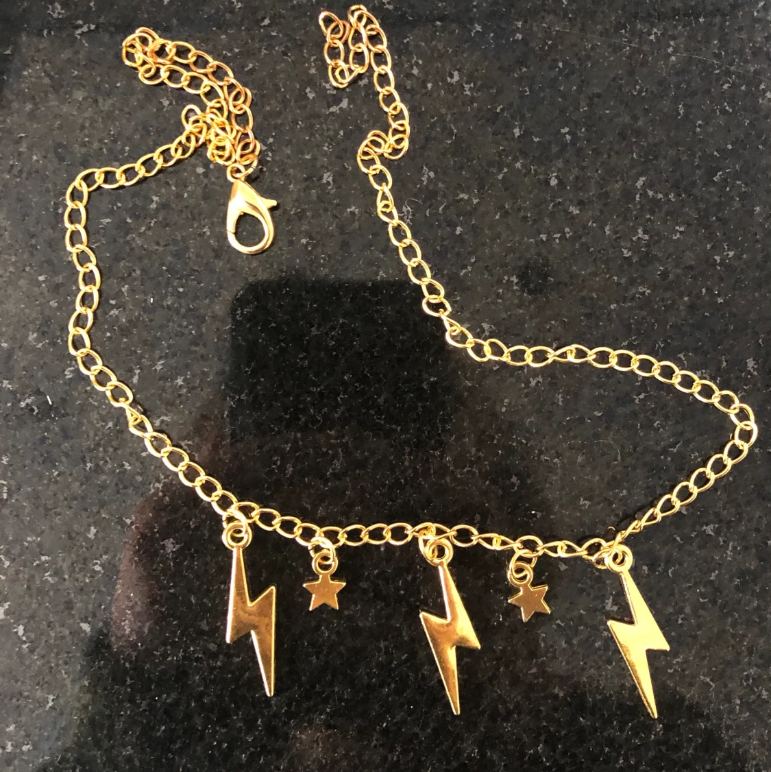 Super coolt guldigt blixt halsband. 85kr (frakten är inkluderad i priset) kontakta mig vid intresse eller funderingar💓💓⭐️