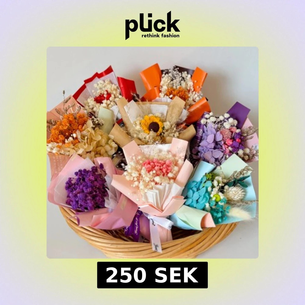 Vi Ă€r ett nystartat litet företag i Sverige som skapar handgjorda gĂ„vor med torkade blommor â varje present Ă€r gjord med kĂ€rlek och omsorg. Vad ingĂ„r i varje set? âą En bukett med torkade blommor âą LED-ljusslinga som skapar magisk stĂ€mning âą En söt liten nallebjörn (vĂ€lj din favorit!) âą Stilren och genomskinlig presentförpackning Pris: 250 kr / set Frakt: 30 kr (2â3 dagar inom Sverige) Perfekt som present till födelsedagar, student, tackgĂ„va eller bara för att visa omtan