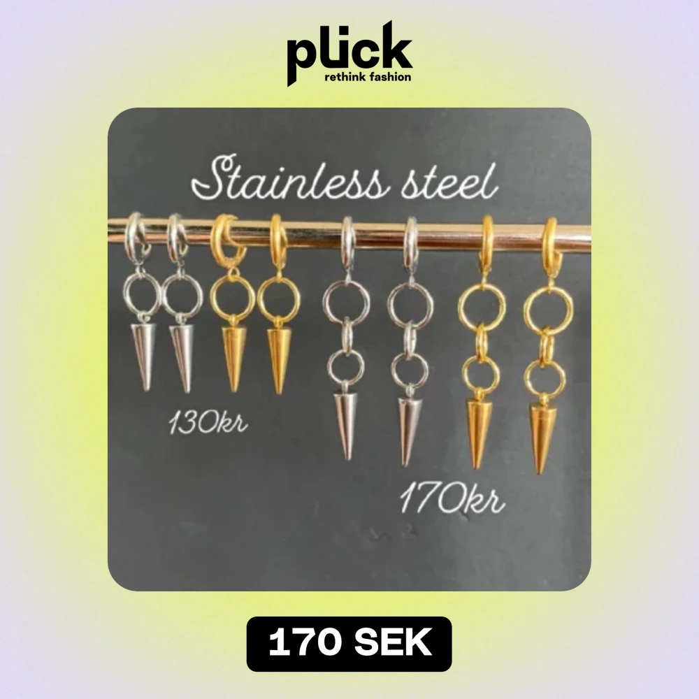Stilrena örhängen och halsband  - Stilrena örhängen och halsband inspirerade av Maria Nilsdotter. Material-rostfritt stål. Örhängen längd-3,7cm, halsband längd-40cm. ☝️Vid köp ingår två extra berlocker som kan bytas ut, då själva hänget är ömtåligt och känsligt för stötar.
