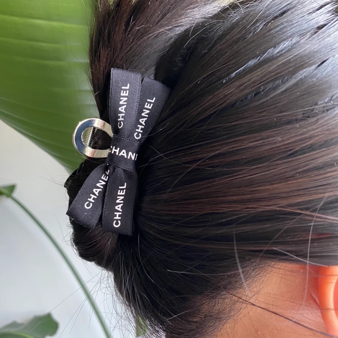 Handmade hårklämma gjordes av äkta Chanel band. Perfekt till vardag, fest. Frakt: 26kr