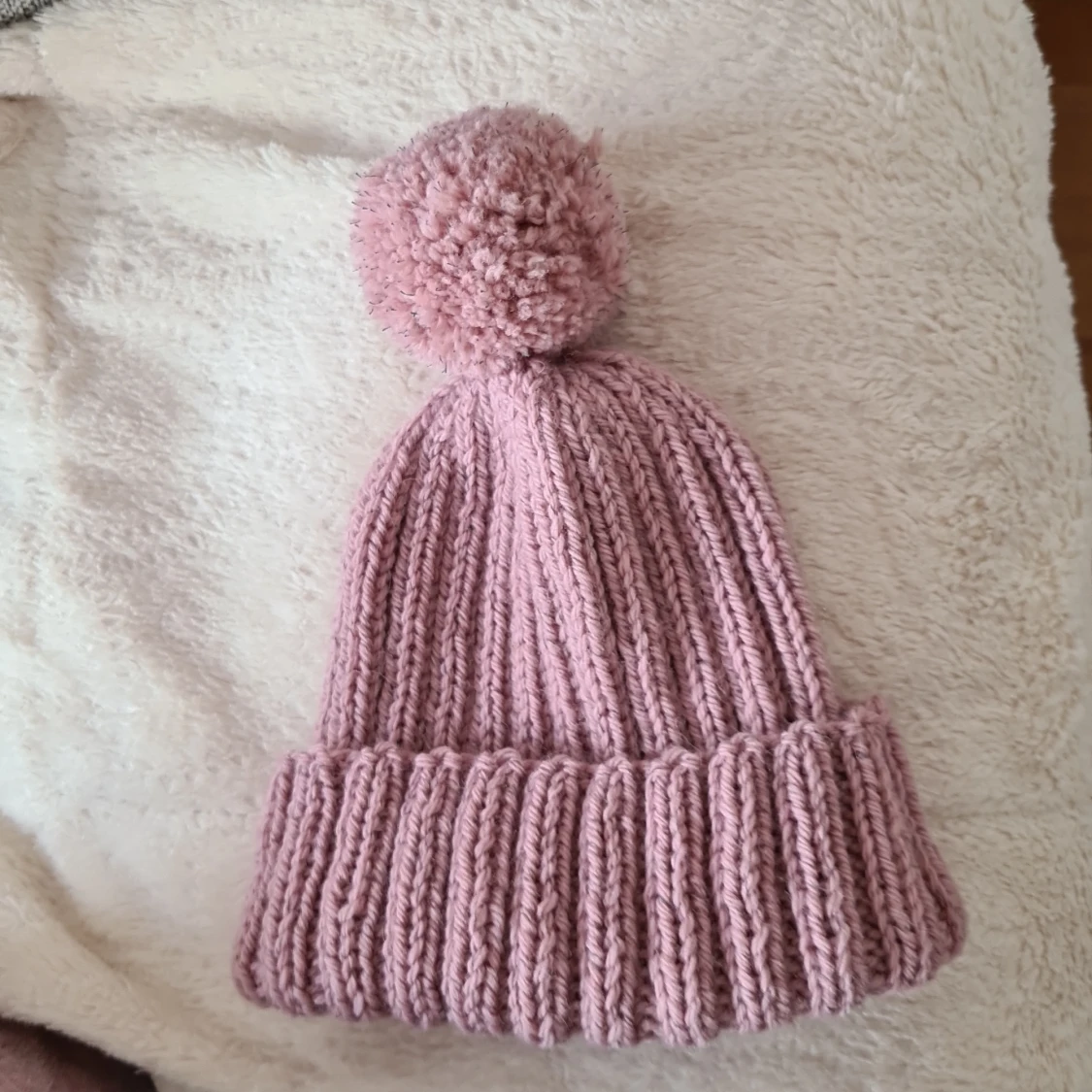 Nystickad mössa med boll Har fin passform och vörmer till vintern, perfekt julklapp!