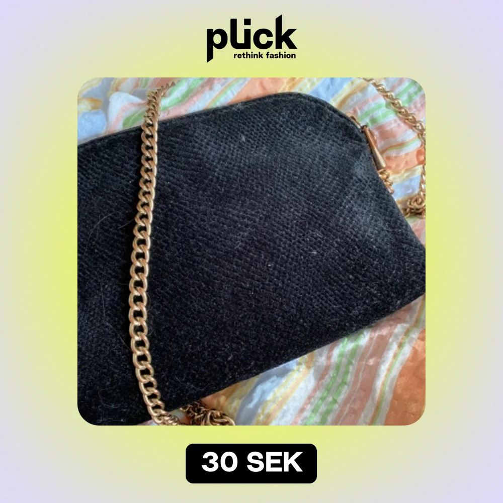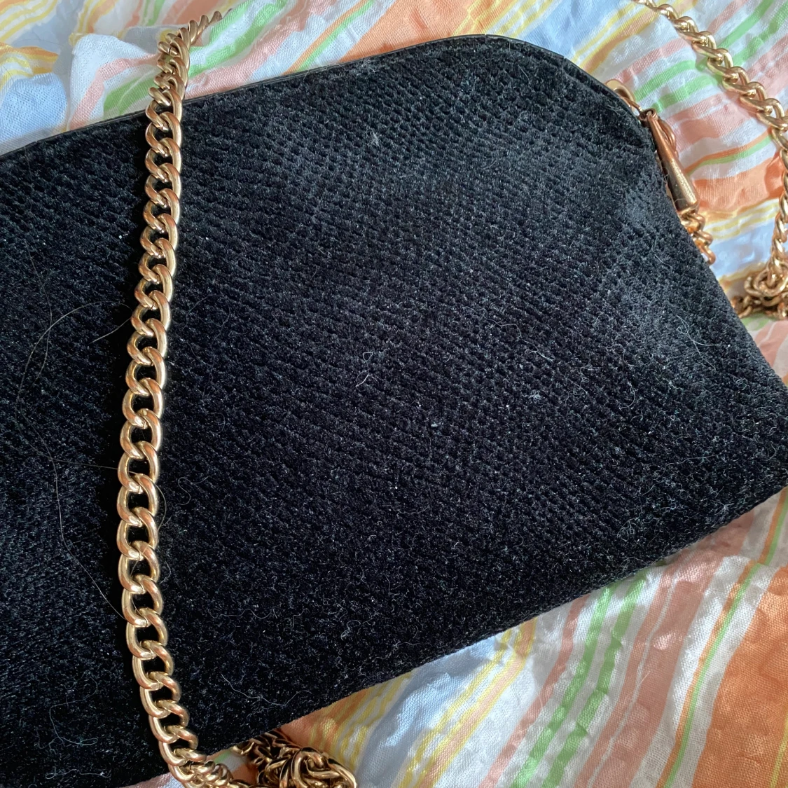Mindre väska med lång kedja. Mönstrad, Sammet Obs! Kedjan är orangefärgad på många ställen pga rost/slitage