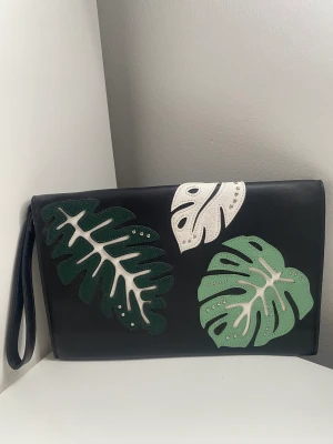 En härlig kuvertväska med blad på. Aldrig använd. Måtten är 30cmX19cm.