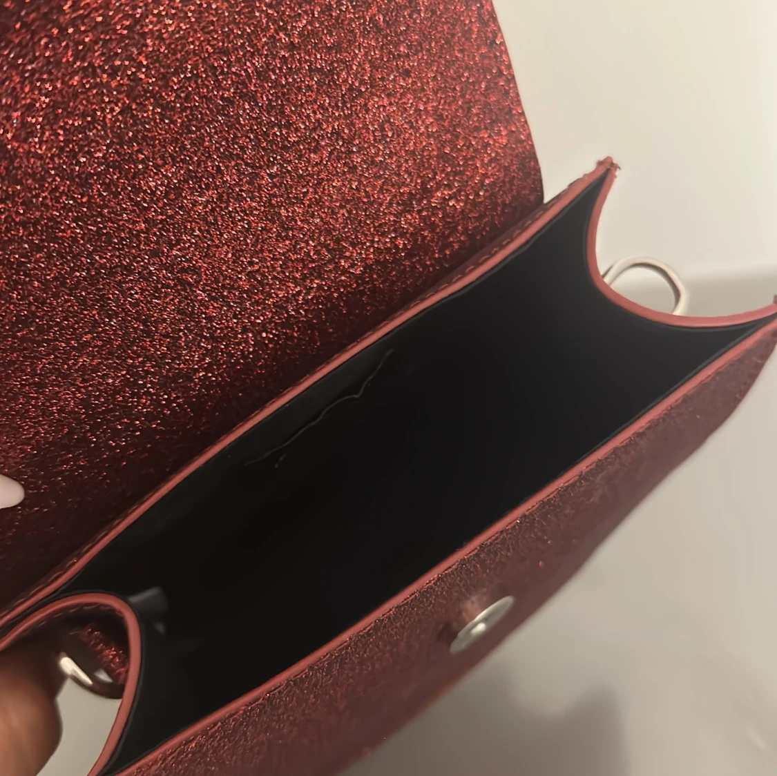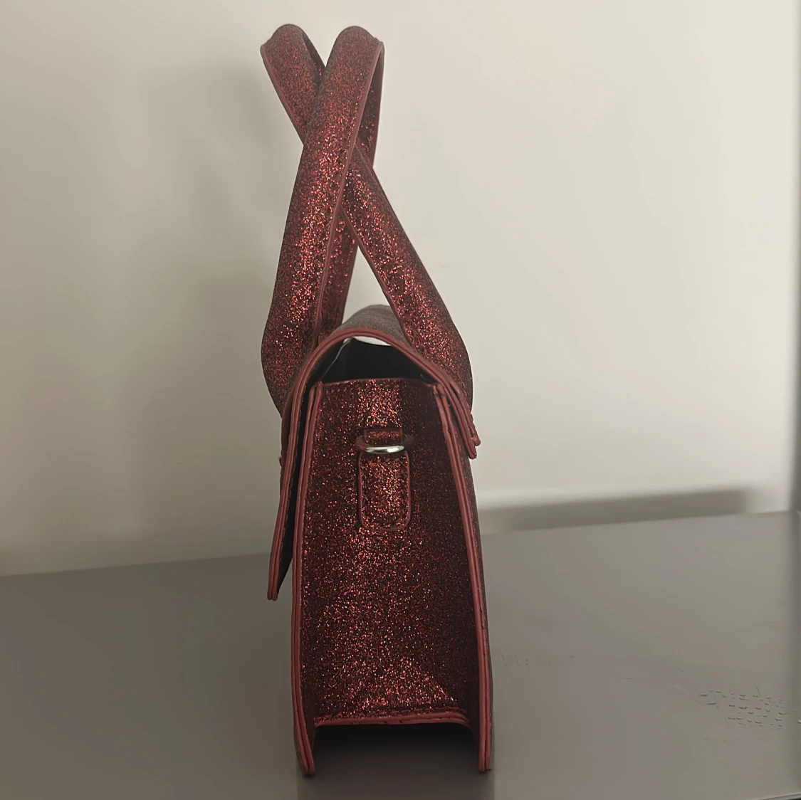 Röd glitter väska köpt på Nelly. Aldrig använd. 20cm bred