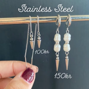 Halsband och örhängen inspirerade av Maria Nilsdotter  - Stilrena örhängen och halsband inspirerade av Maria Nilsdotter. Material-rostfritt stål. Örhängen längd-3,7cm, halsband längd-40cm. ☝️Vid köp ingår två extra berlocker som kan bytas ut, då själva hänget är ömtåligt och känsligt för stötar.