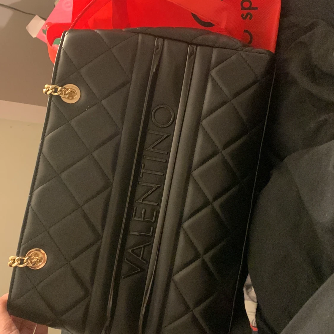 Säljer min alldeles nya valentino väska, säljer den då jag inte har någon användning av den. Den har utrymme men de syns dock inte på bilden. Man kan ha i matlåda osv i så den är bra med utrymme