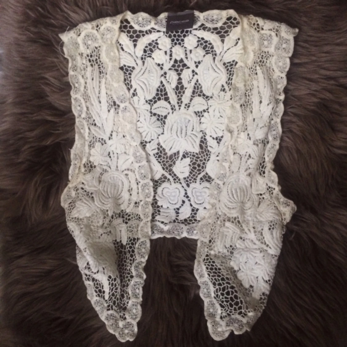 SPETSVÄST - PIECES Vackert plagg i krämvit spets. Perfekt över ett linne, en blus eller varför inte en klänning. Fungerar till mycket helt enkelt!