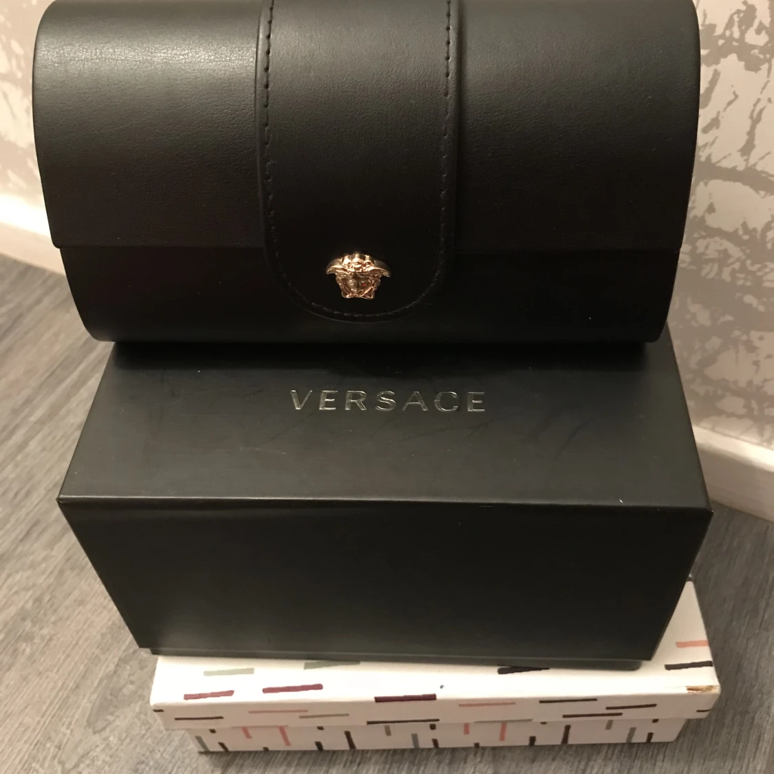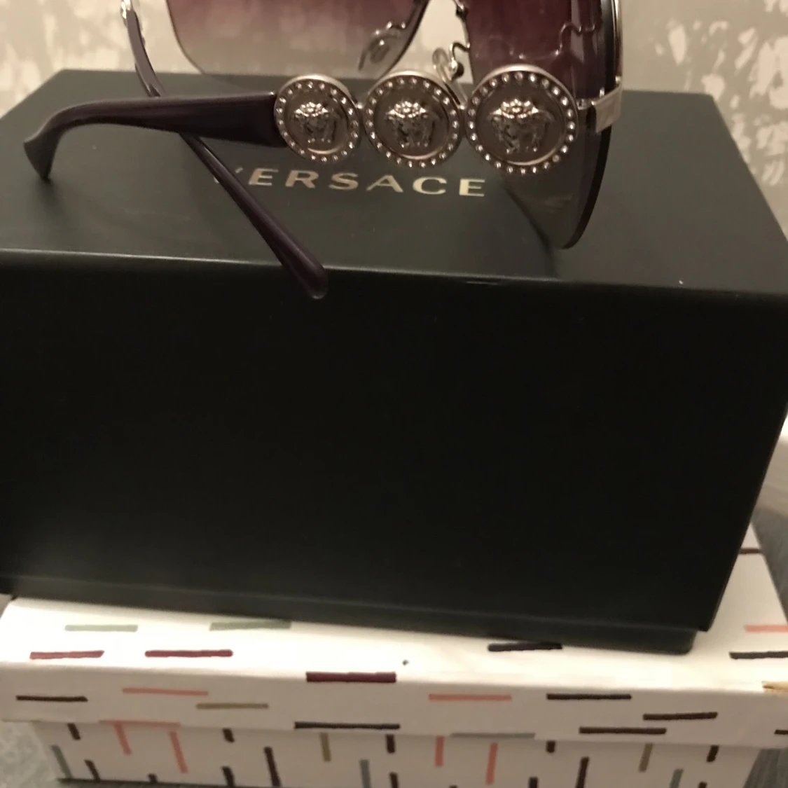 Säljer mina solglasögon som jag knappt använt. Det är Äkta Versace säljes med ett exklusivt fodral och putsduk.