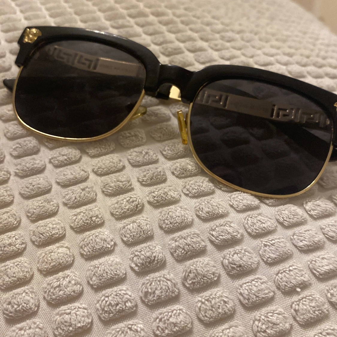 Jag säljer ett par VERSACE glasögon! Knappt använda utan kvitto och utan låda. Dom är svarta med guld detaljer, original pris 2000kr