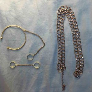 (Halsbandet/kedjan såld!) Guldiga smycken (kedja, armband med ring, ringar med kedja) 30kr för alla tillsammans Går att köpa grejerna enskilda, kom med prisförslag! ⛓Kan mötas i Uppsala och Rimbo ⛓Köparen står för frakt ⛓Swish eller kontanter