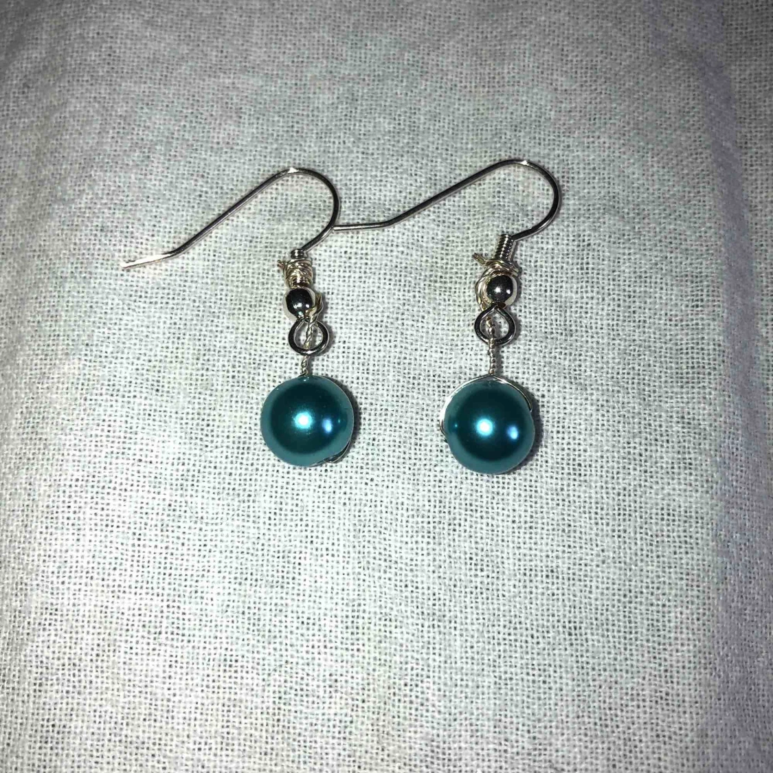Säljer du sa sina blåa hemma gjorda örhängena aldrig använda mycket bra skick💙