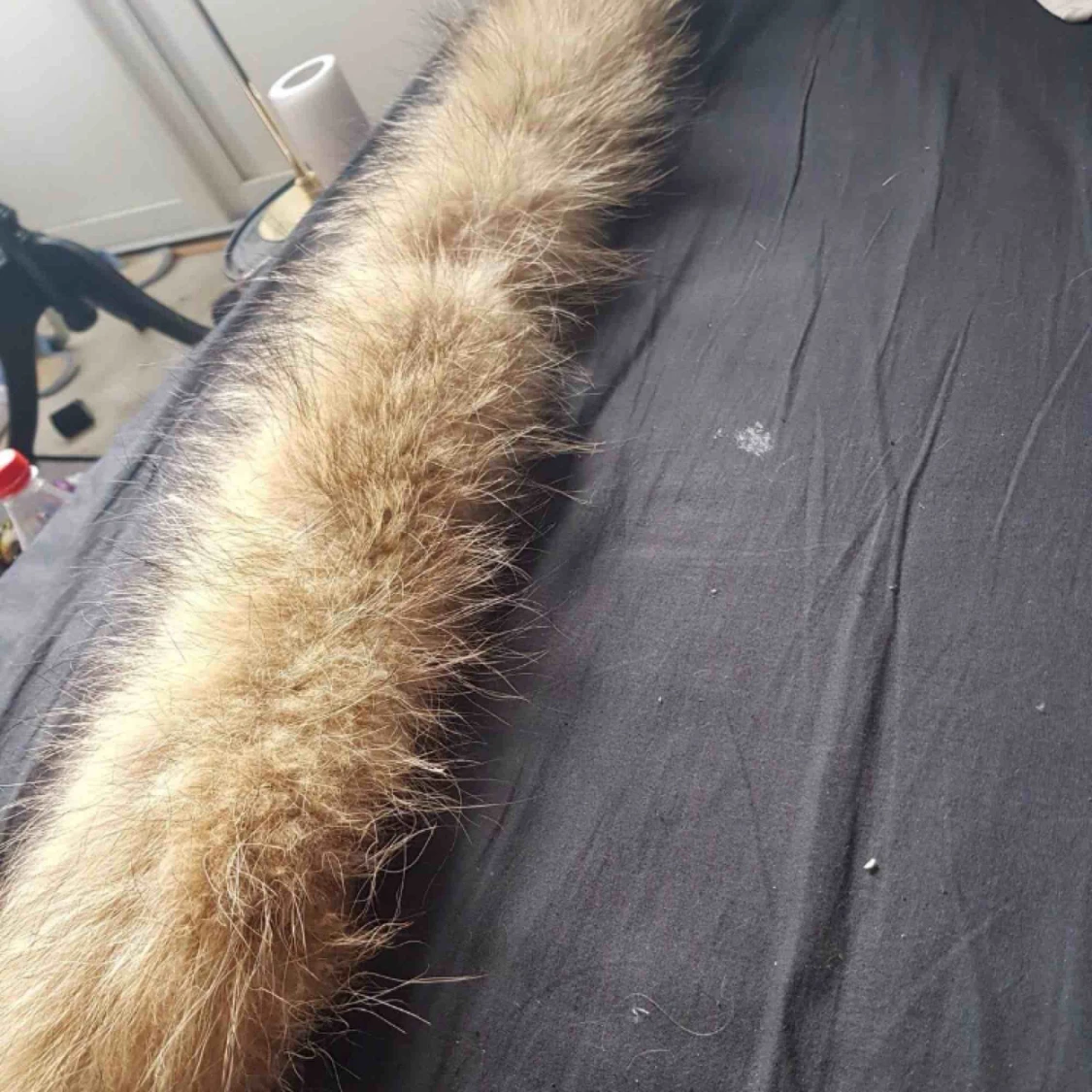 Äkta fin pälskrage. Har tappat två knappar men syns inte när den välär på jackan, Och kan lätt sättas dit två nya knappar ifall man vill det betalning sker via swish och fraktar överallt inom sverige frakten ingår i priset:)