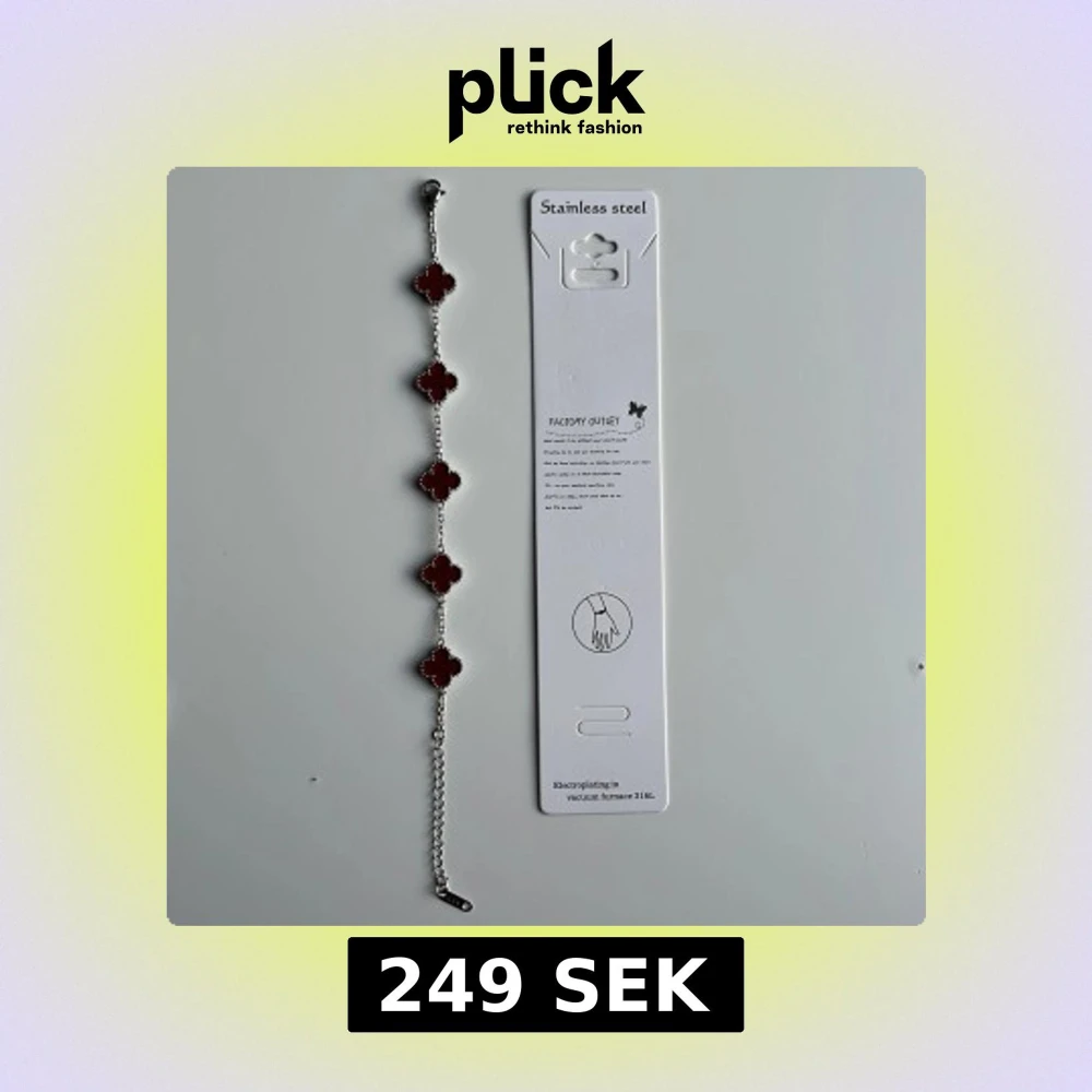 Snyggt armband i rostfritt stål med fem röda fyrklöver-formade berlocker. Kedjan är silverfärgad och har justerbar längd. Perfekt för dig som vill ha en unik detalj till din outfit. Mvh clover.se