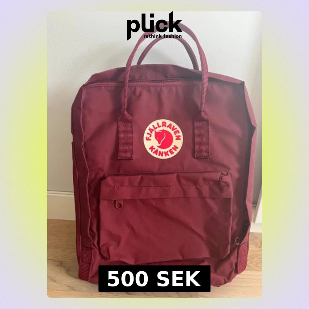 Säljer en ny oanvänd klassisk vinröd Kånken ryggsäck från Fjällräven med rund logotyp framtill. Väskan har ett stort huvudfack, en mindre ficka med dragkedja på framsidan och två handtag upptill. Perfekt för skola eller häng med kompisar.