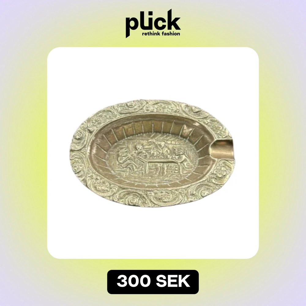 Vintage ashtray with handcrafted ornate details In good vintage condition Total length 7 cm