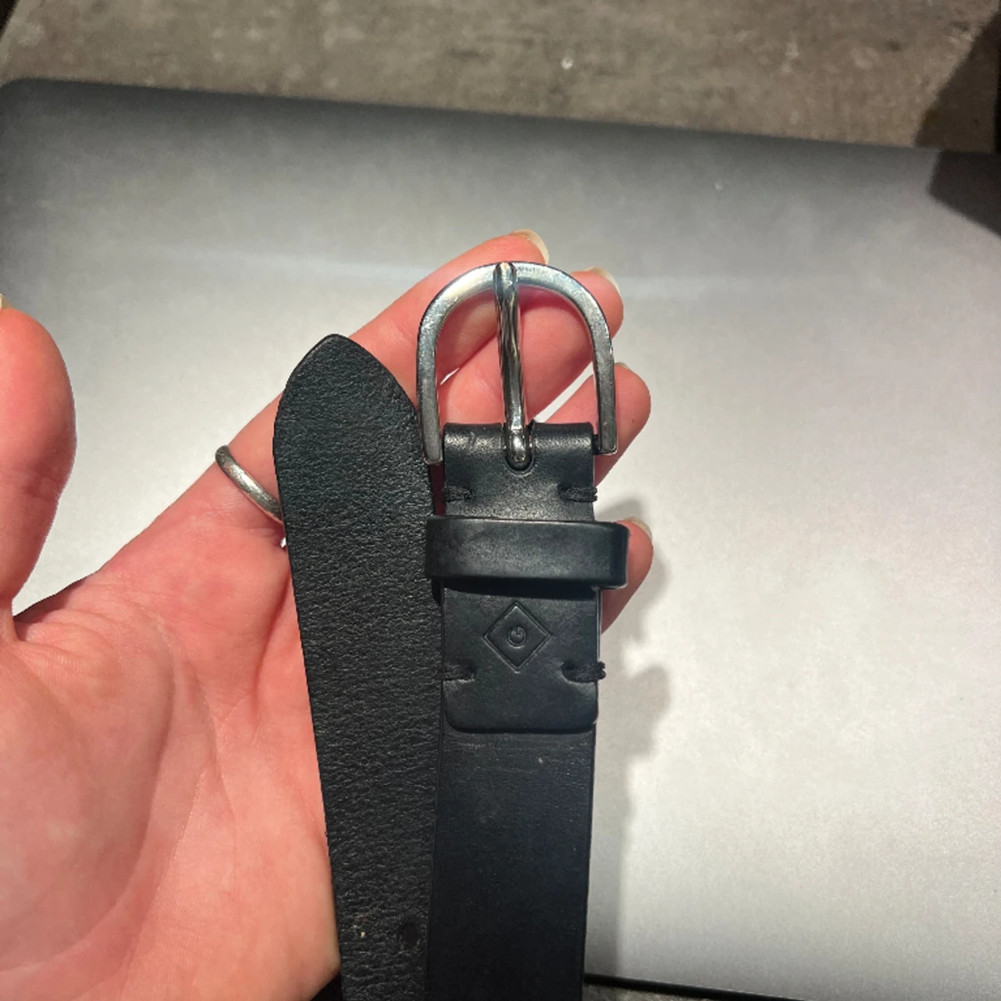 Stilrent svart skärp från Gant, vintage, nypris för liknande ca 700kr Total längd: 98cm Längd mellan hålen och spännet: 87-77cm Pris kan diskuteras✨