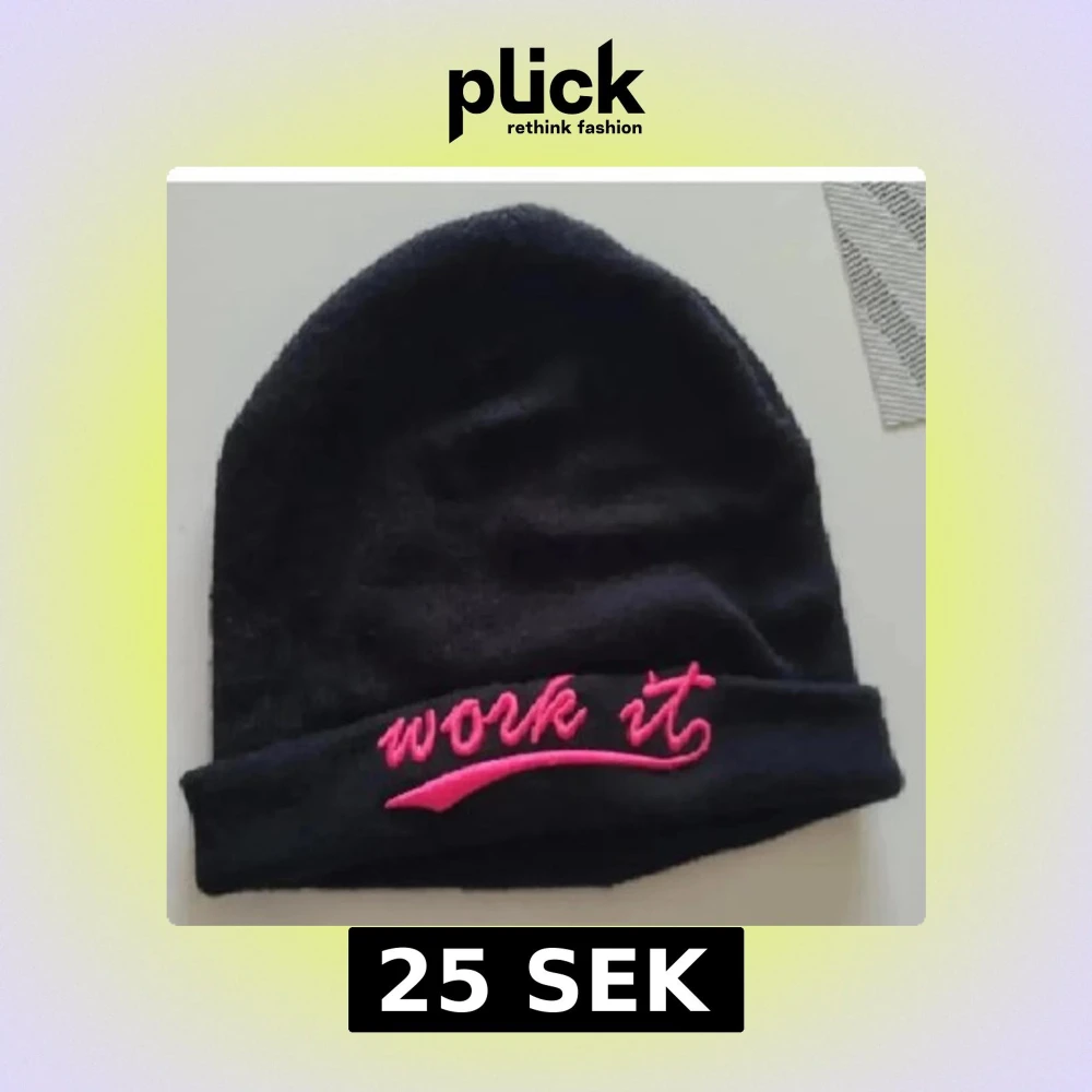 Snygg svart mössa från Glitter med texten 'work it' broderad i rosa framtill. Perfekt för att hålla värmen under kyliga dagar.
