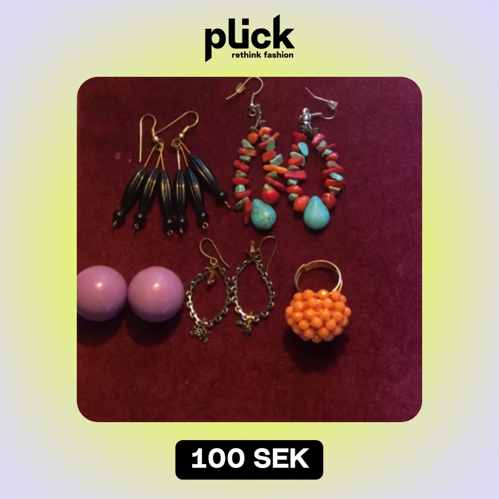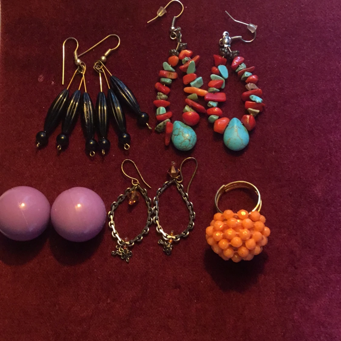 Tre par örhängen för hål ett par stora clips en ring med töjbar skena