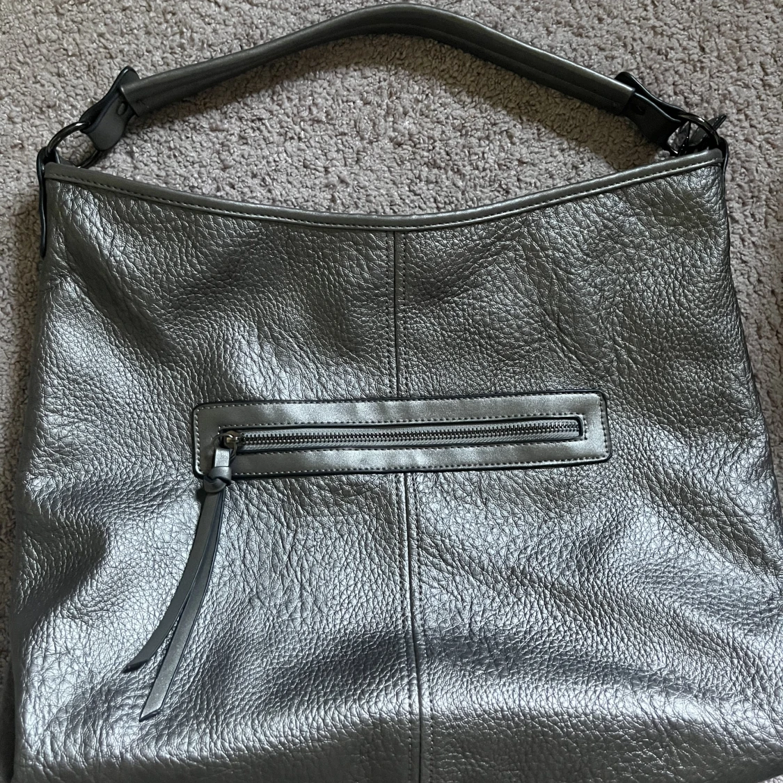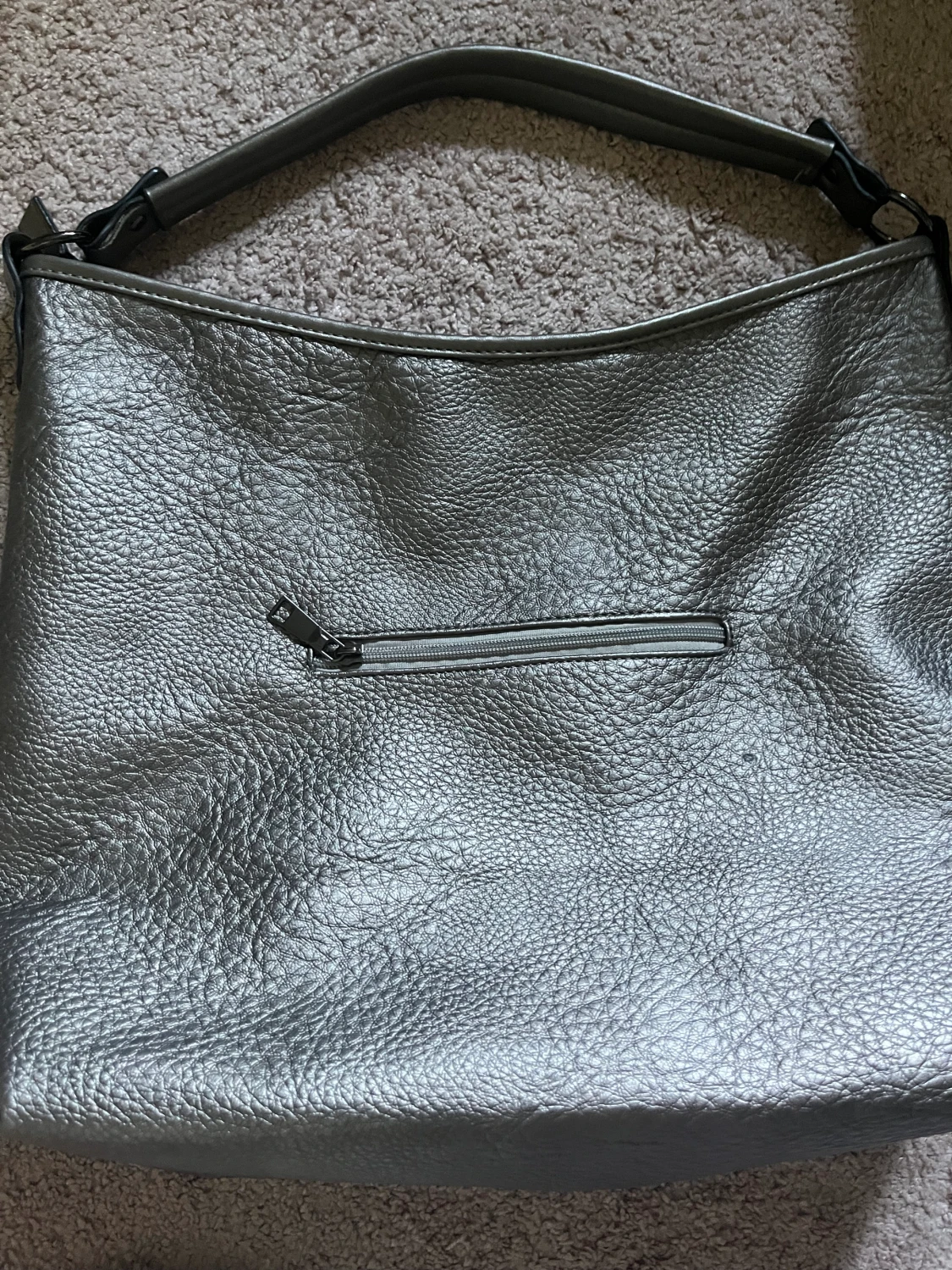 En silvrig vintage väska, säljer då den inte kommer till användning, den är väldigt rymlig och perfekt till skolan.