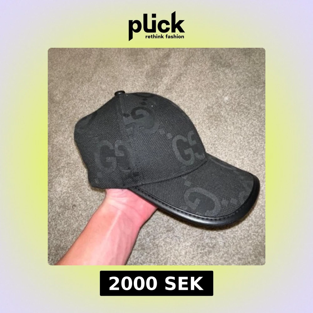 Snygg svart keps från Gucci med diskret GG-mönster över hela kepsen. Kepsen har böjd skärm med läderdetalj runt kanten och justerbart läderspänne bak. Kepsen är i bra skick (pris kan diskuteras).