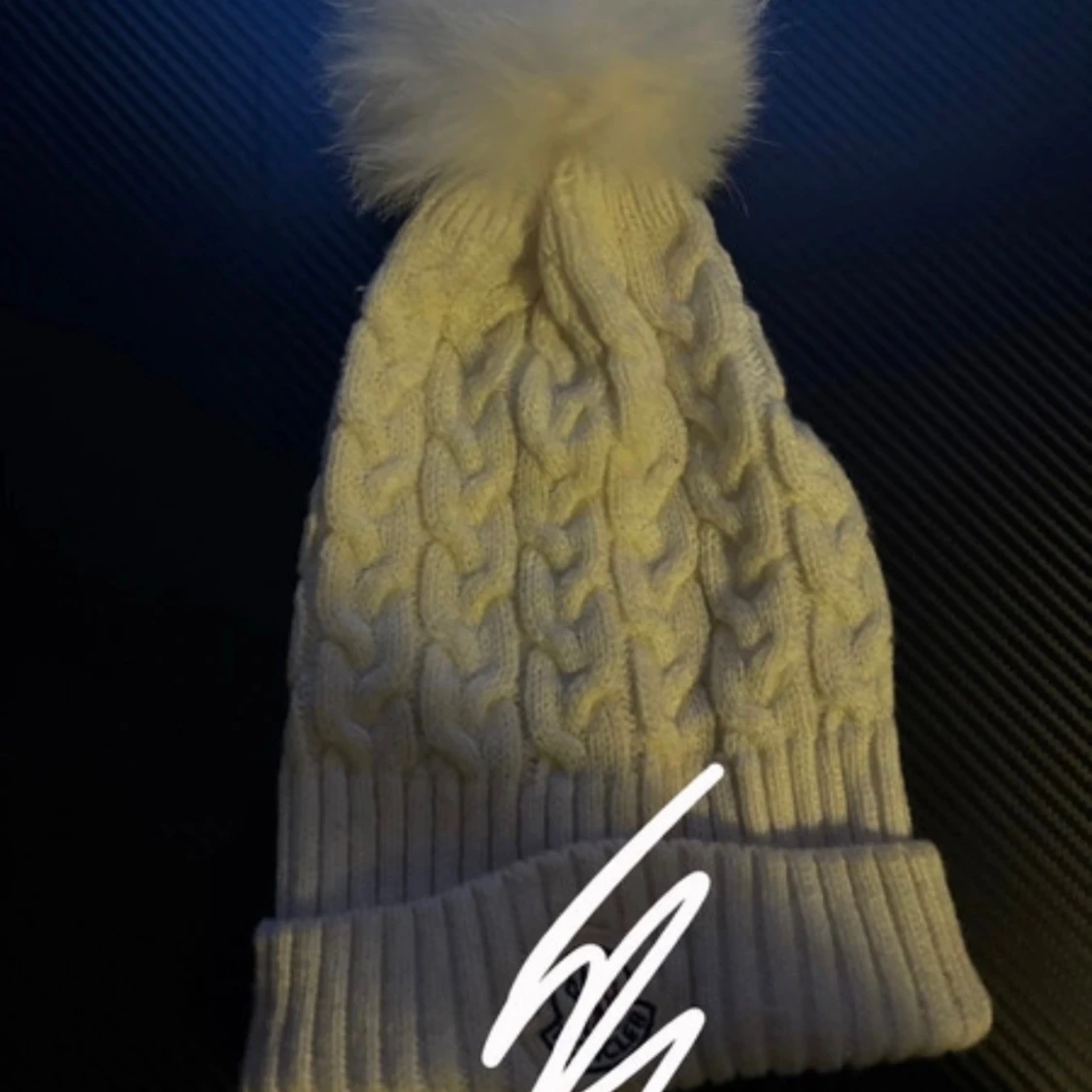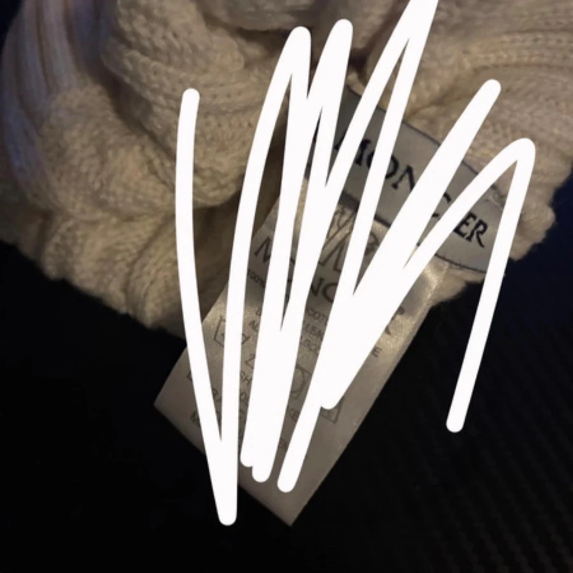 Snygg vit mössa från Moncler med grovstickat flätmönster och bred ribbad kant. På toppen sitter en fluffig vit pälsboll som ger extra stilpoäng. Märkeslogga framtill. Perfekt för dig som vill ha en varm och trendig mössa i vinter.