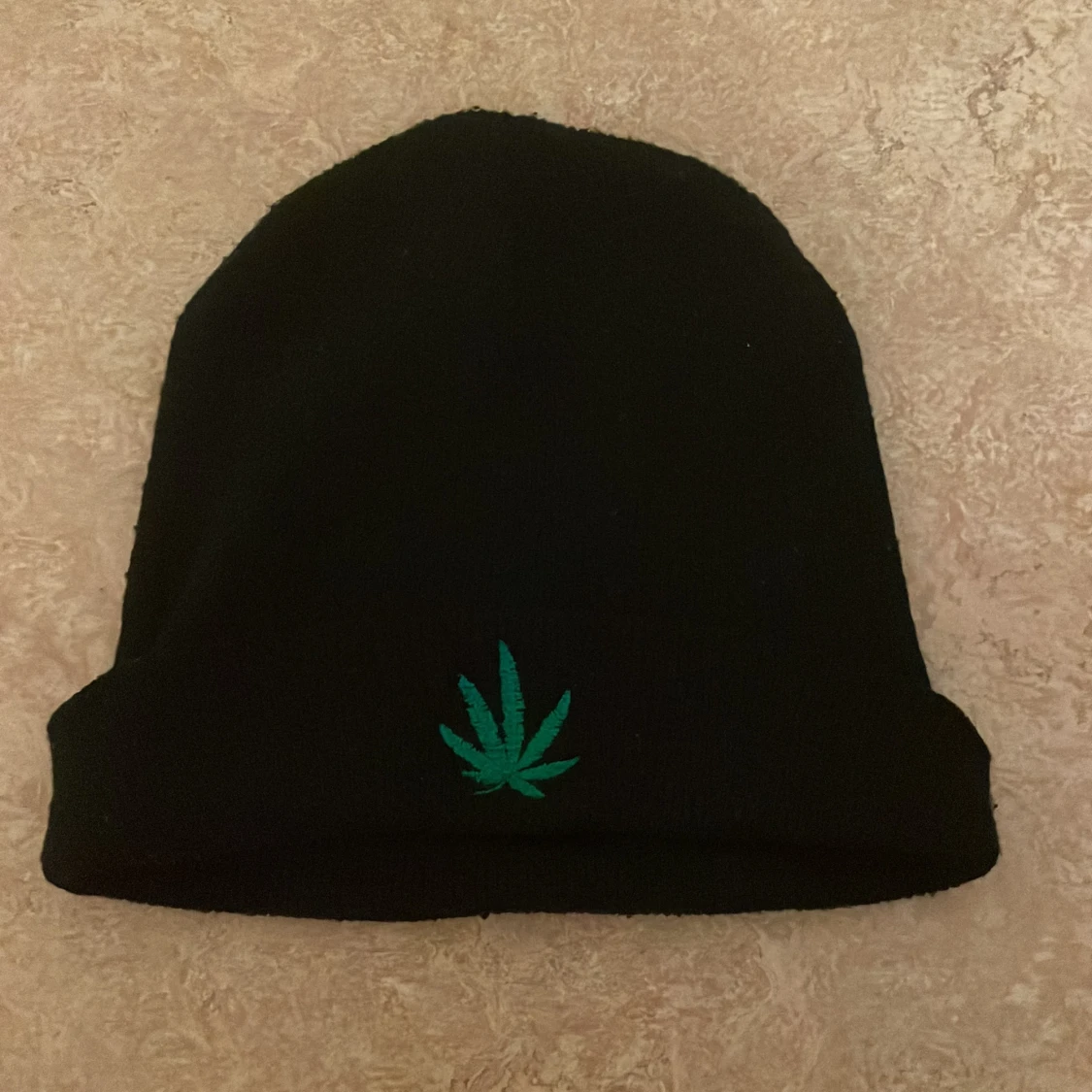 svart marijuana-mössa som jag fick i present, ej kommit till användning. frakt kan variera