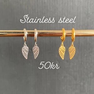 Stilrena örhängen och halsband  - Stilrena örhängen och halsband inspirerade av Maria Nilsdotter. Material-rostfritt stål. Örhängen längd-3,7cm, halsband längd-40cm. ☝️Vid köp ingår två extra berlocker som kan bytas ut, då själva hänget är ömtåligt och känsligt för stötar.