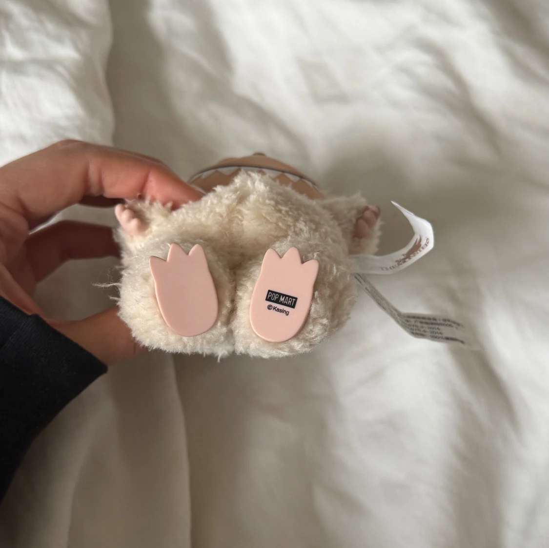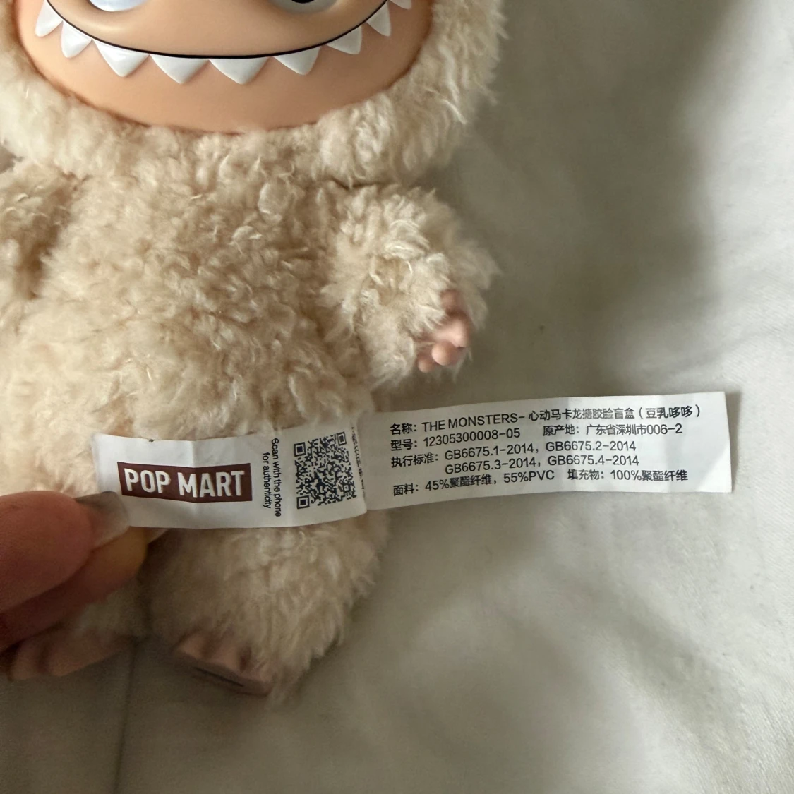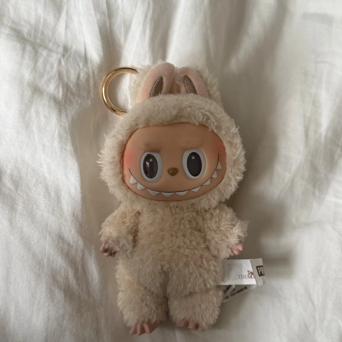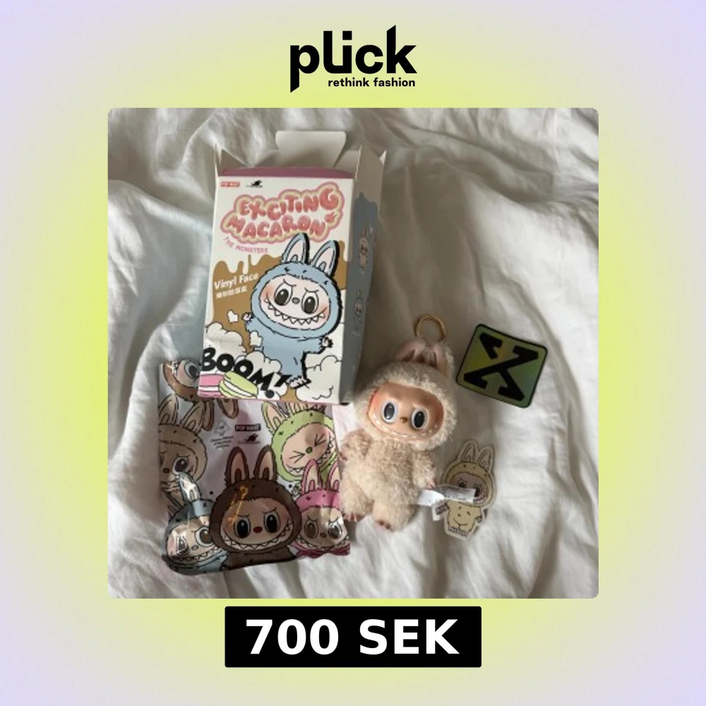 säljer min SUPERSÖTA labubu i färgen ”soymilk” från popmart!! världens finaste färg som passar till allt 🤗 några få tecken på användning över brynen och på händerna (se bilder) men som nog går att tvätta bort, kartongen har även fått några skador. annars toppskick! allt på bilden medföljer, originalkartong, påse, sticker och köpt på stockx så även den stickern kommer med ❤️❤️❤️❤️❤️