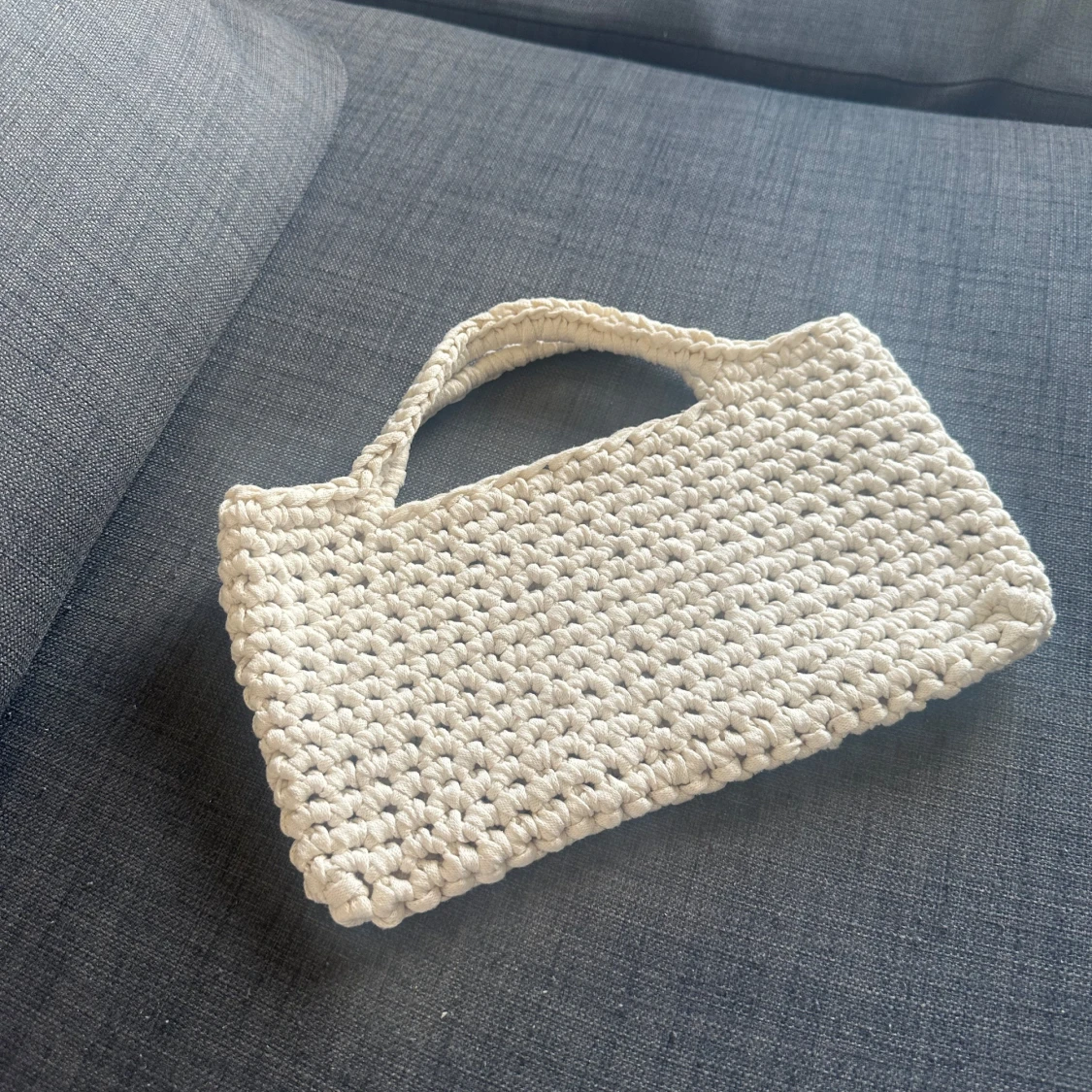 Säljer en liten handvirkad väska i återvunnet matterial. Uppskattar den till att vara ca 25x10 cm. Billig då den är en ny modell jag testat.