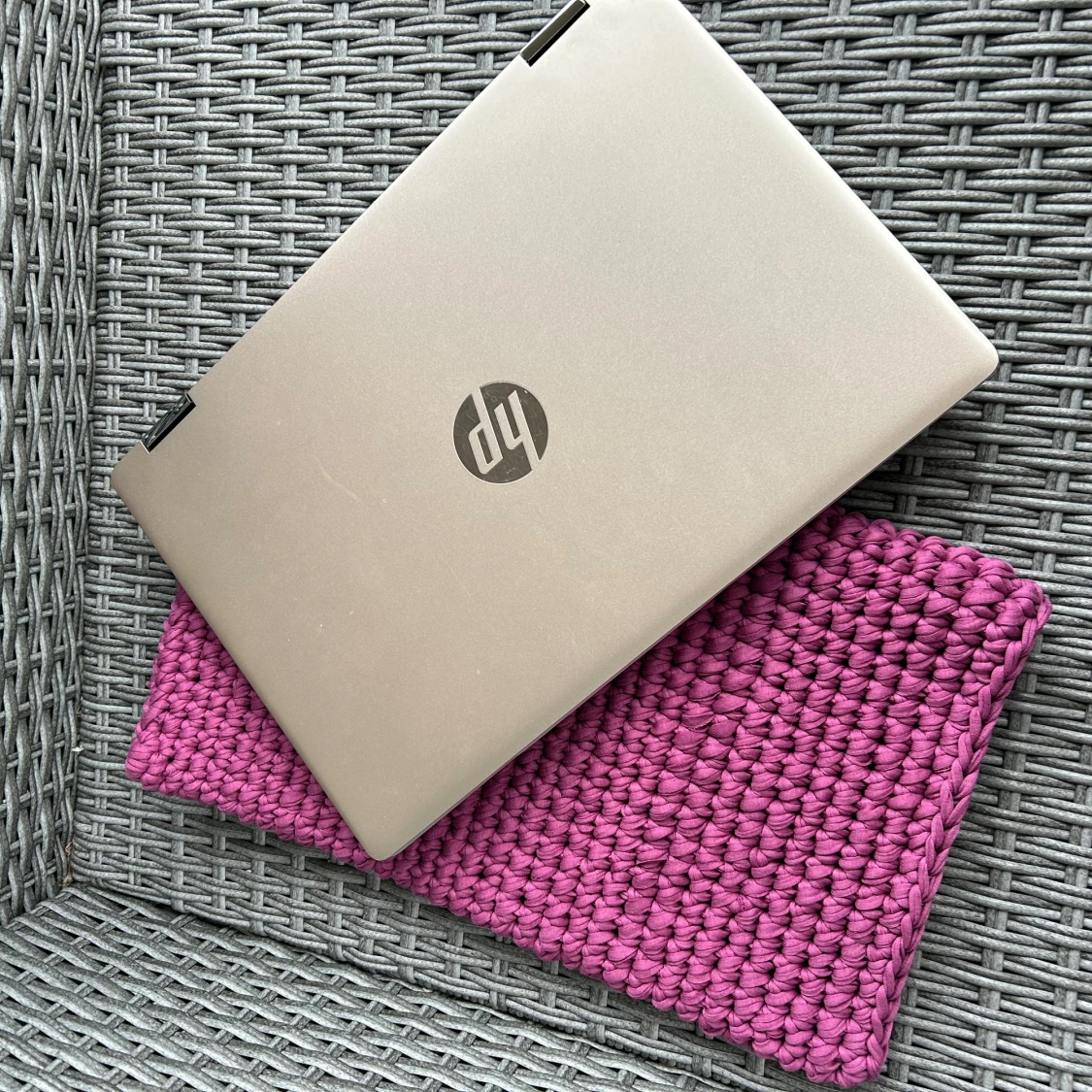 Hemmavirkat rosa/lila datorfodral i 100% t-shirtgarn i överskott från textilindustrin. Fodralet är tjockt och ger ett bra skydd. Storlek: 22,5x36cm. Passar en dator som är 20x33cm eller mindre🥰 kan även passa något större då det är stretchigt material.
