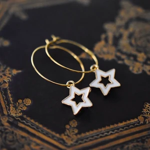 Handgjorda, nickelfria örhängen 🌙 Finns i flera färger och former! Ringen är 25mm i diameter, och hänget varierar i storlek från 10mm och uppåt. 🪐 Köp 1 par för 40kr, 2 par för 70kr, 3 par för 100kr! Du får också med en fin liten presentpåse. Frakt på 13kr tillkommer 💫