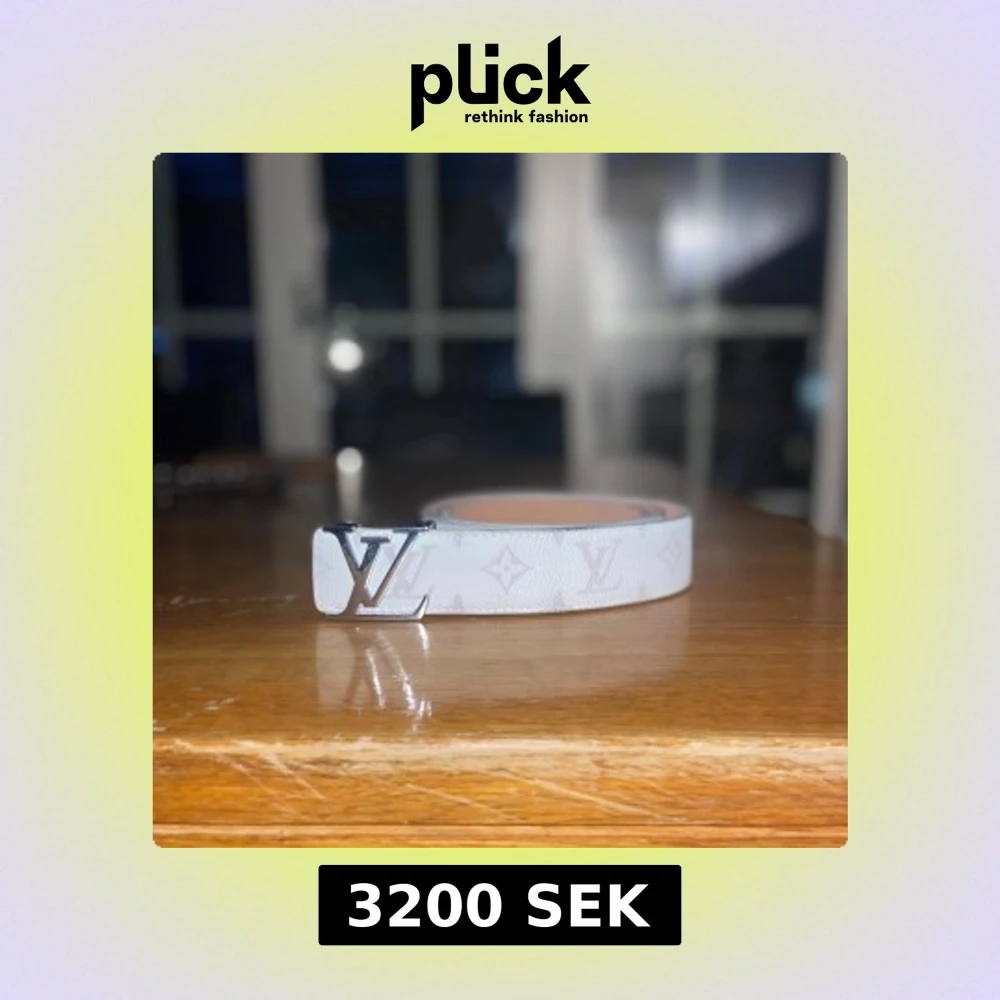 Snyggt vitt Louis Vuitton bälte i skinn med klassiskt monogrammönster och en silverfärgad LV-logga som spänne. Bältet har en stilren och modern look som verkligen sticker ut. Perfekt accessoar för att lyfta din outfit med exklusiv känsla.