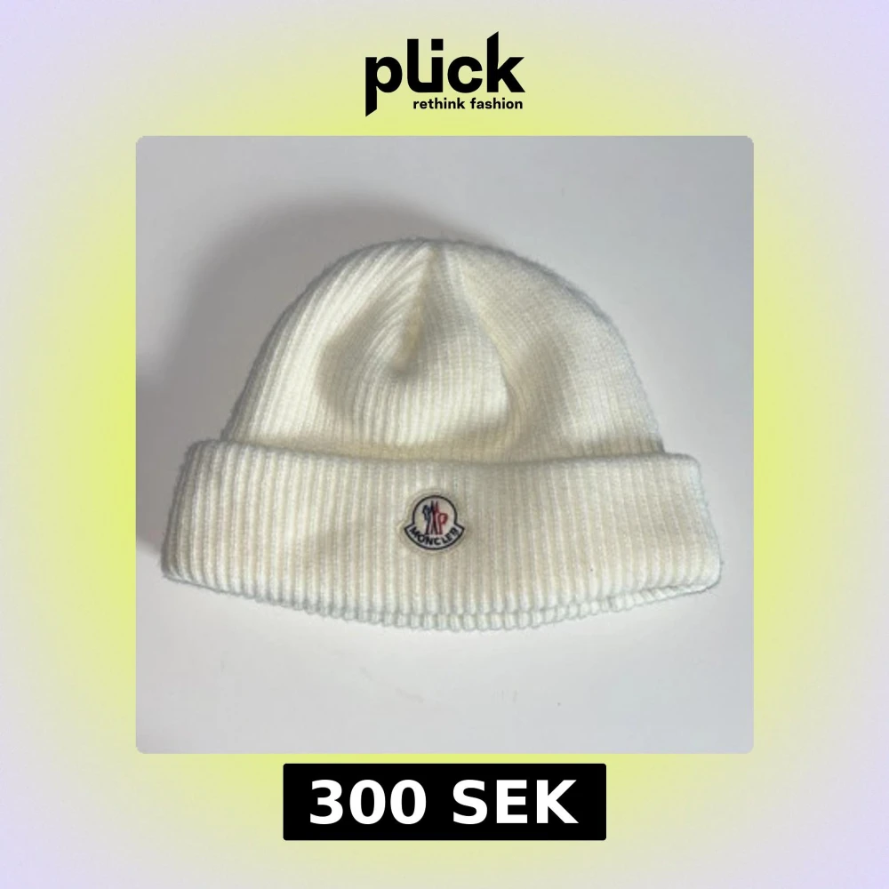 Snygg vit mössa från Moncler med ribbad struktur och uppvikt kant. Framtill sitter Monclers klassiska broderade logotyp i blått och rött. Mössan är tillverkad i mjuk ull och har en clean, stilren look som passar perfekt till kalla dagar. Pris kan diskuteras!