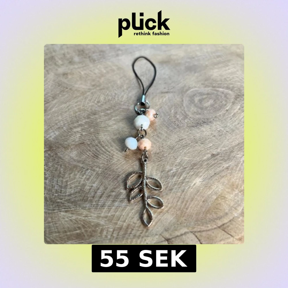 Väsksmycke/phone-charm av glaspärlor och rostfritt stål🎀⚪️💍