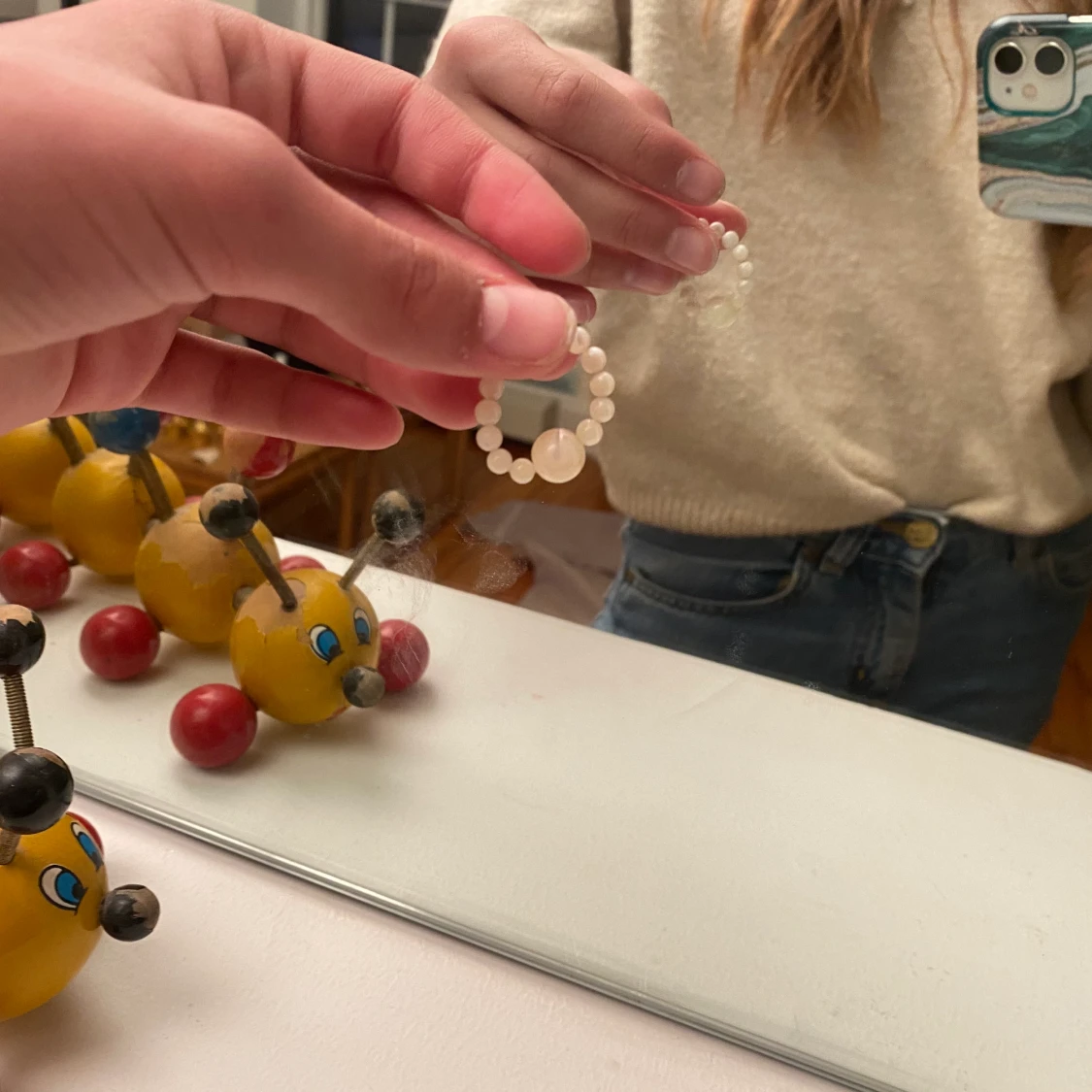 Superfin ring av jättefina glaspärlor i färgen vit. Helt ny och aldrig använd från Desert Design! Har en massa andra annonser där jag säljer samma typ av ring fast i massa andra olika färger så om ni är intresserade kan ni gärna gå in och kolla! Hör av er vid frågor eller funderingar! 💞 köparen står för frakt