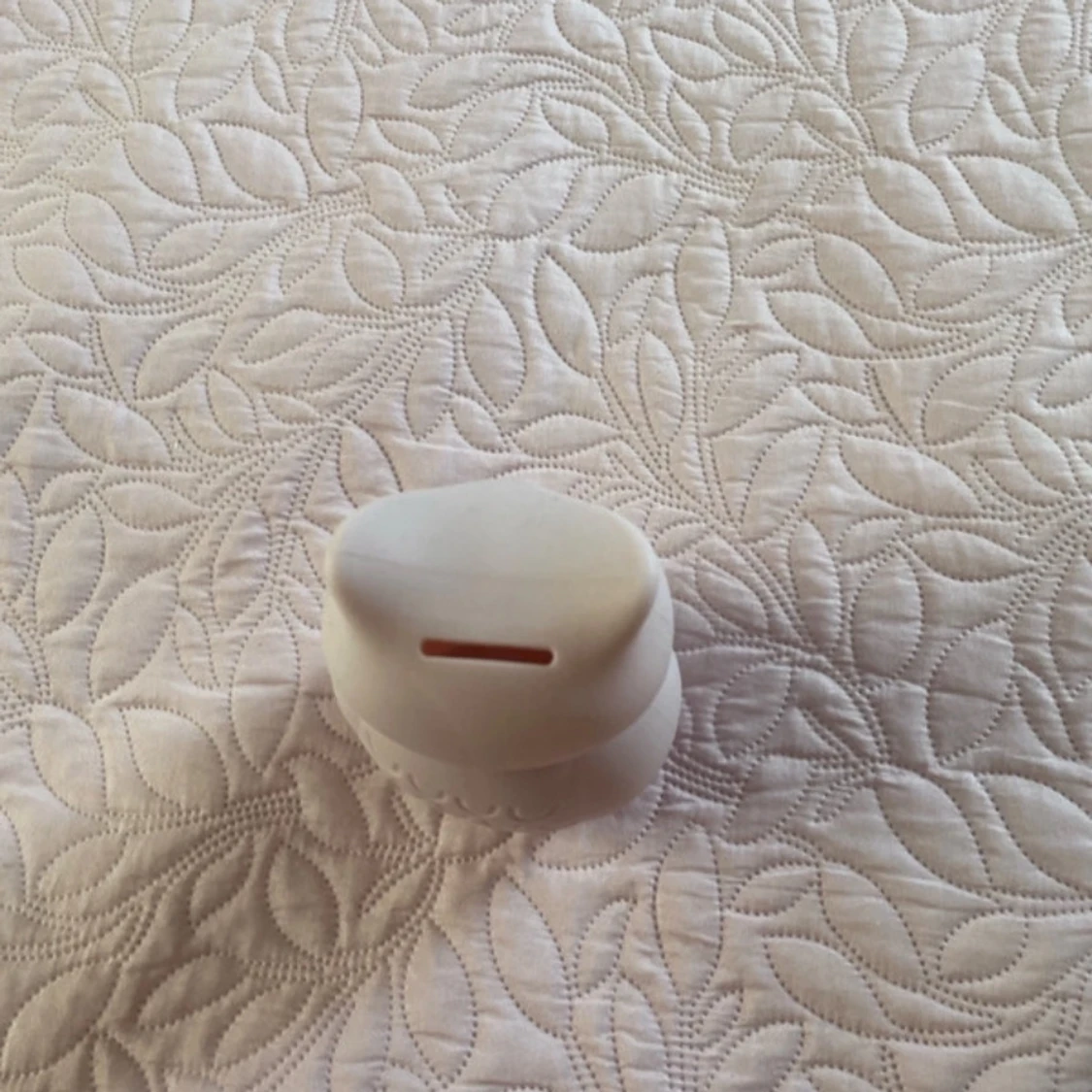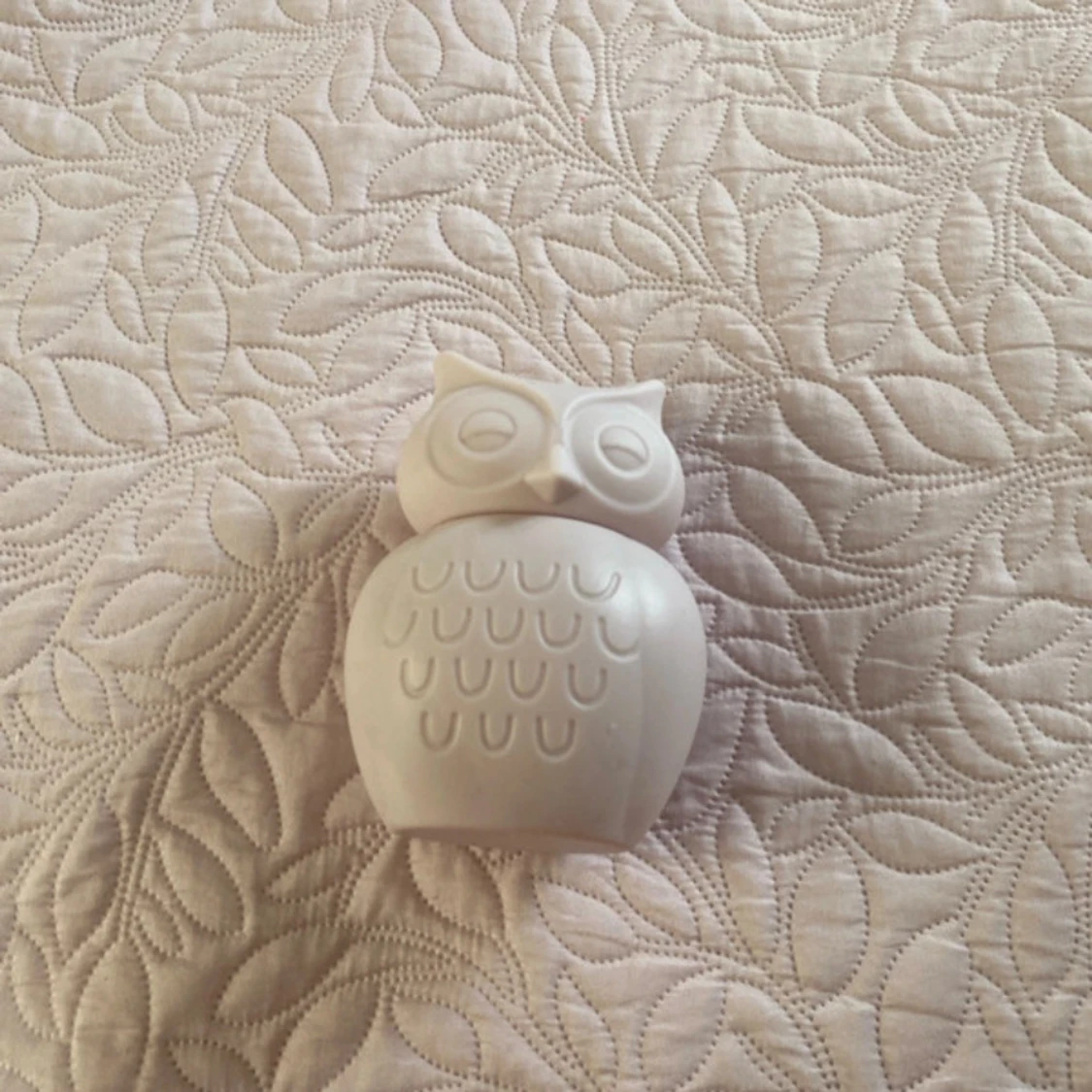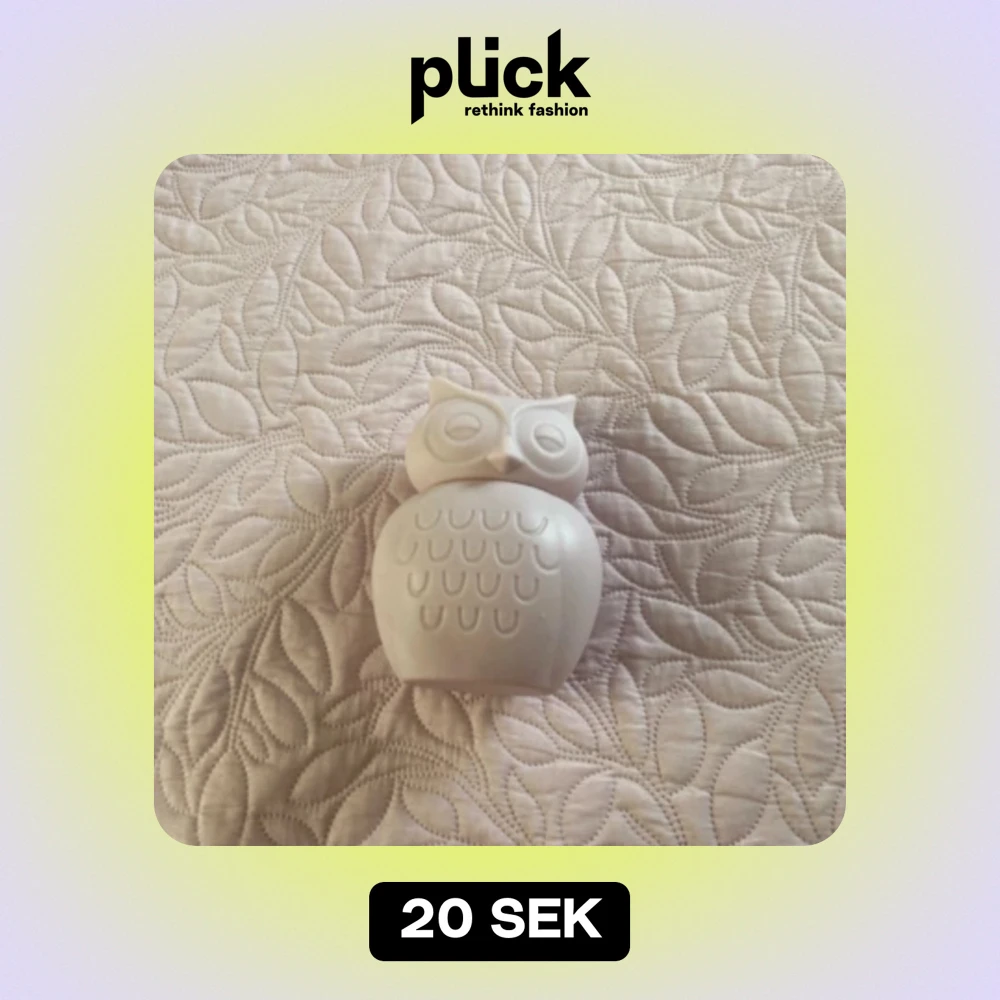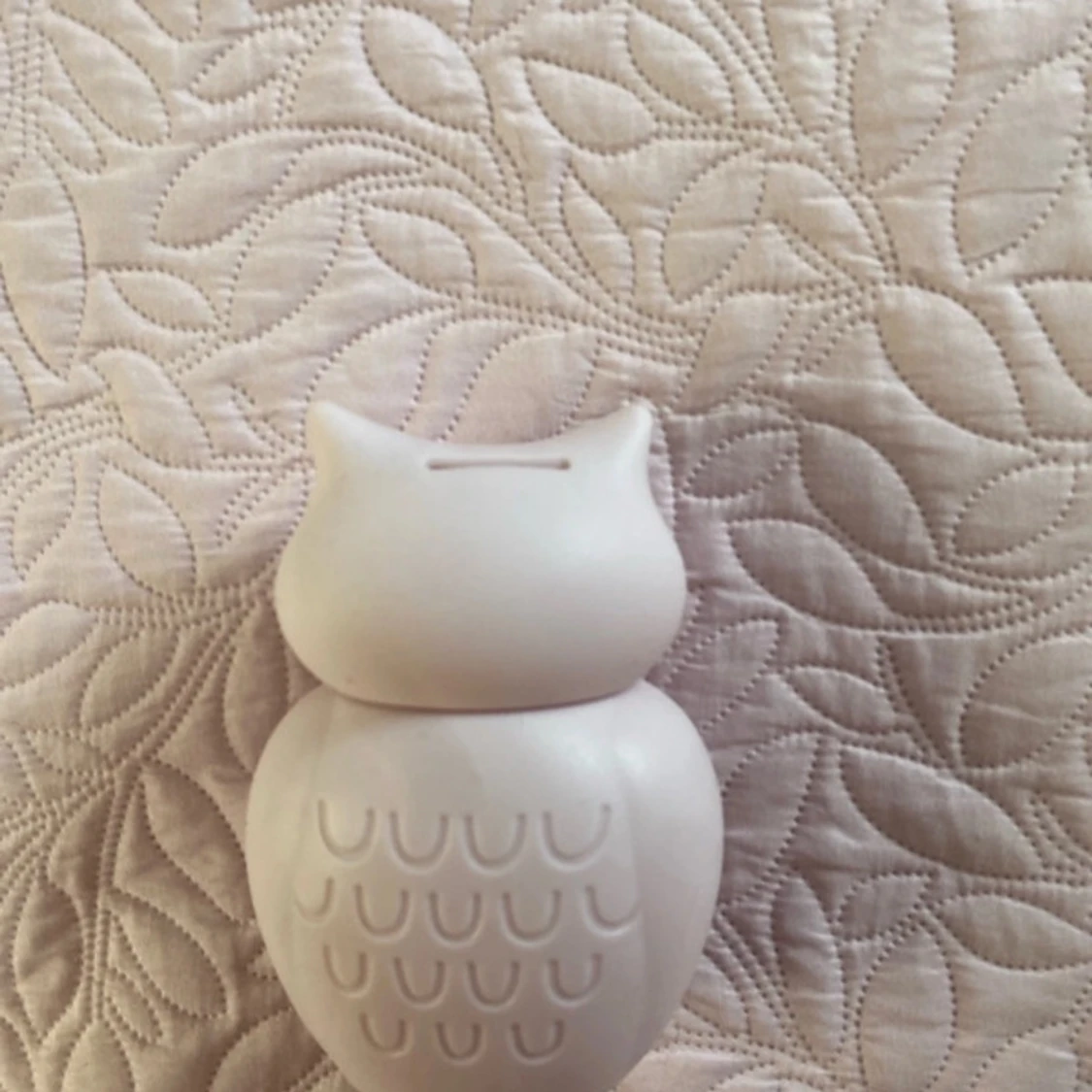 Säljer en superfin vit sparbössa i form av en uggla. Den är gjord av keramik och har en slits på baksidan för att stoppa in mynt. Den är lätt att öppna och stänga, perfekt för att spara dina småpengar. Passar perfekt som en söt inredningsdetalj eller som en present!