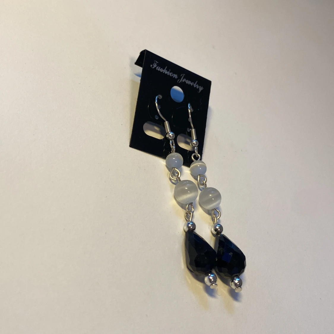 Handgjorda, Vackra Svarta och vita droppformade örhängen *Endast 1 Kvar*