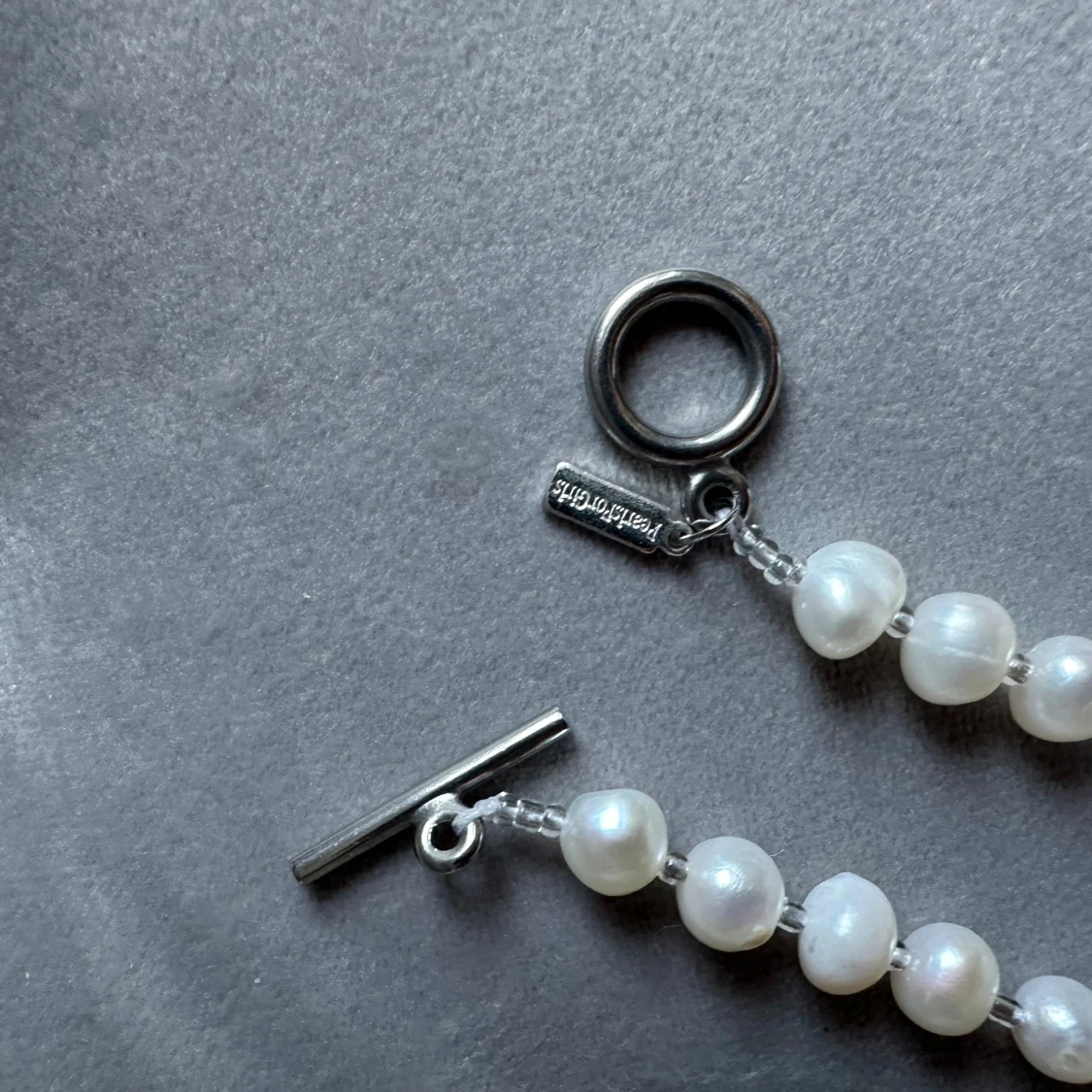 Säljer ett elegant vitt pärlhalsband med fina silverdetaljer. Halsbandet har en stilren design med runda pärlor och ett snyggt lås i silver. Perfekt för både vardag och fest! Storleken på pärlorna är ca 8 mm. Längd 45 cm. Nickelsäkert.