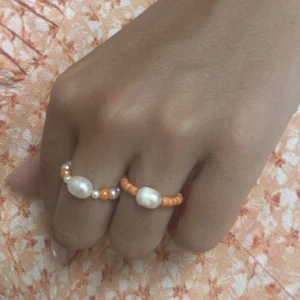 2st ringar i orange med odlad sötvattenspärla i mitten.