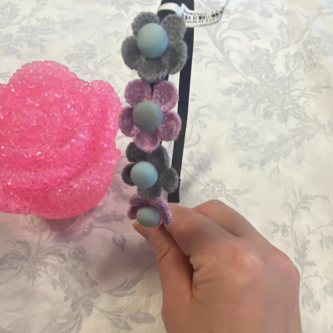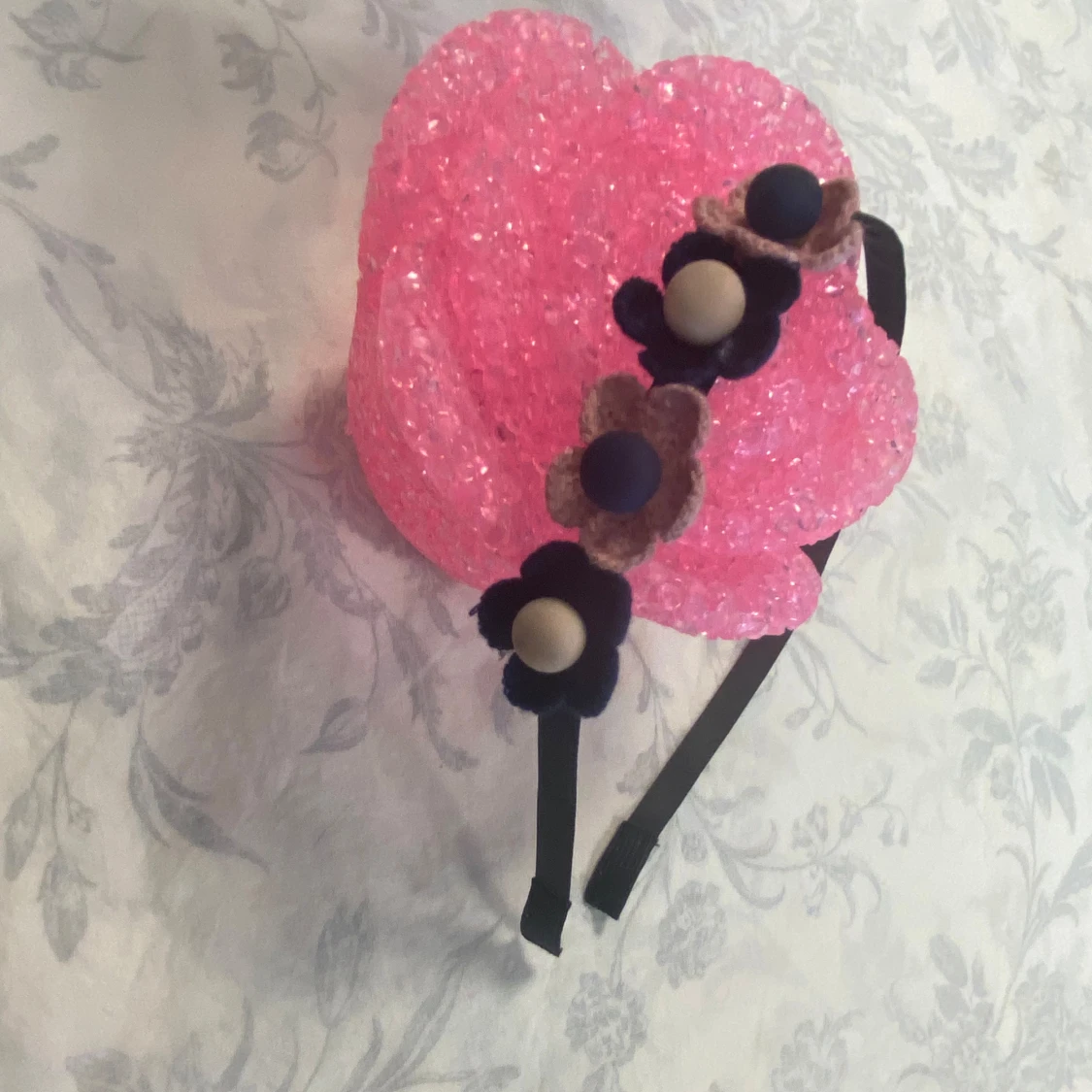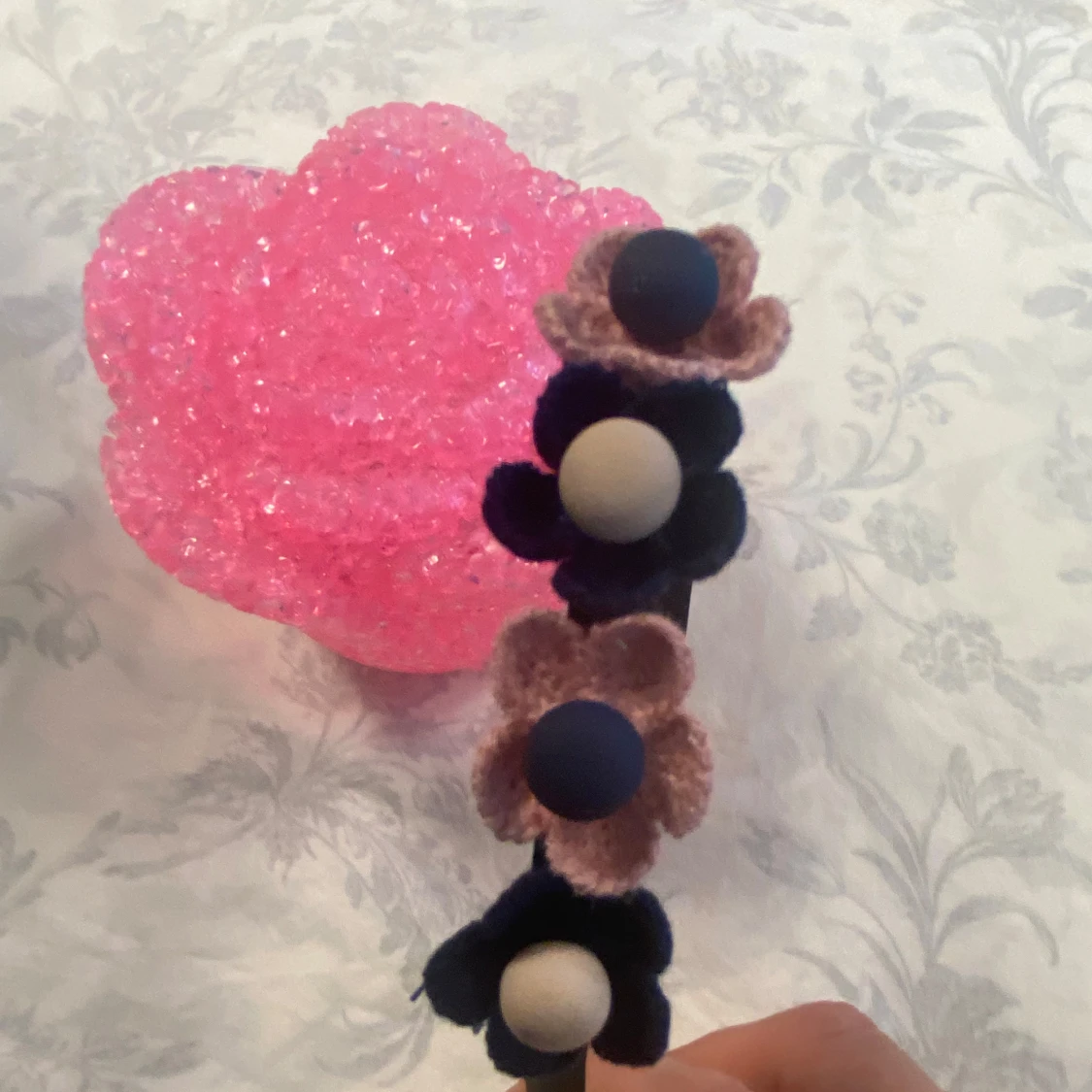 Snyggt diadem med blommor i svart och beige filt. Blommorna är placerade längs hela diademet och har en mjuk, handgjord känsla. Perfekt accessoar för att piffa upp din look. 35kr/st , samma frakt , helt ny