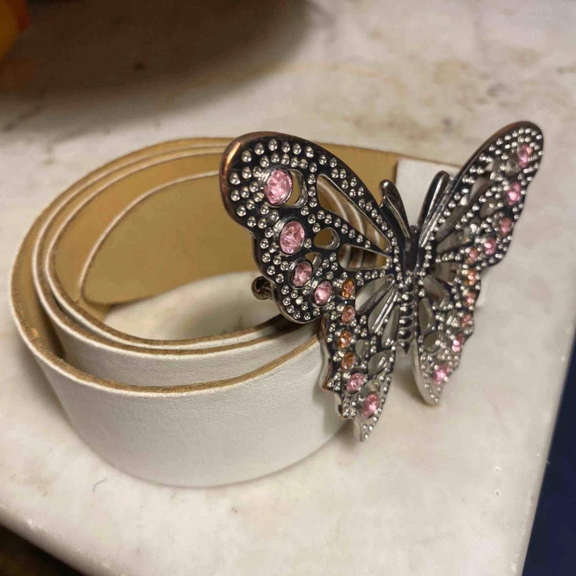 Snyggt vitt fjärils bälte med rosa swarovski kristaller. Bra kvalite på själva bältet. Kan gå ner i pris för en snabb affär! Öppen till frågor samt bud!