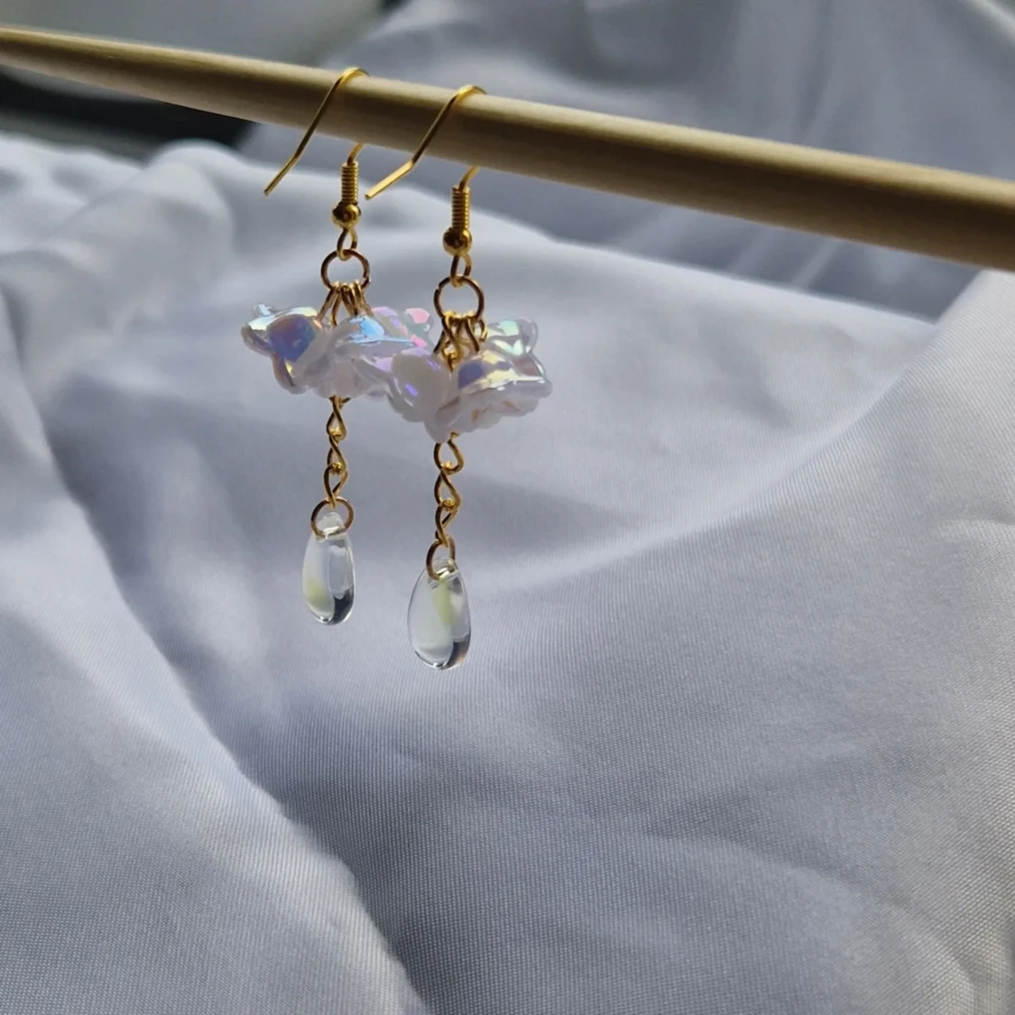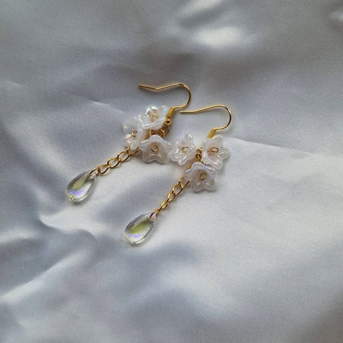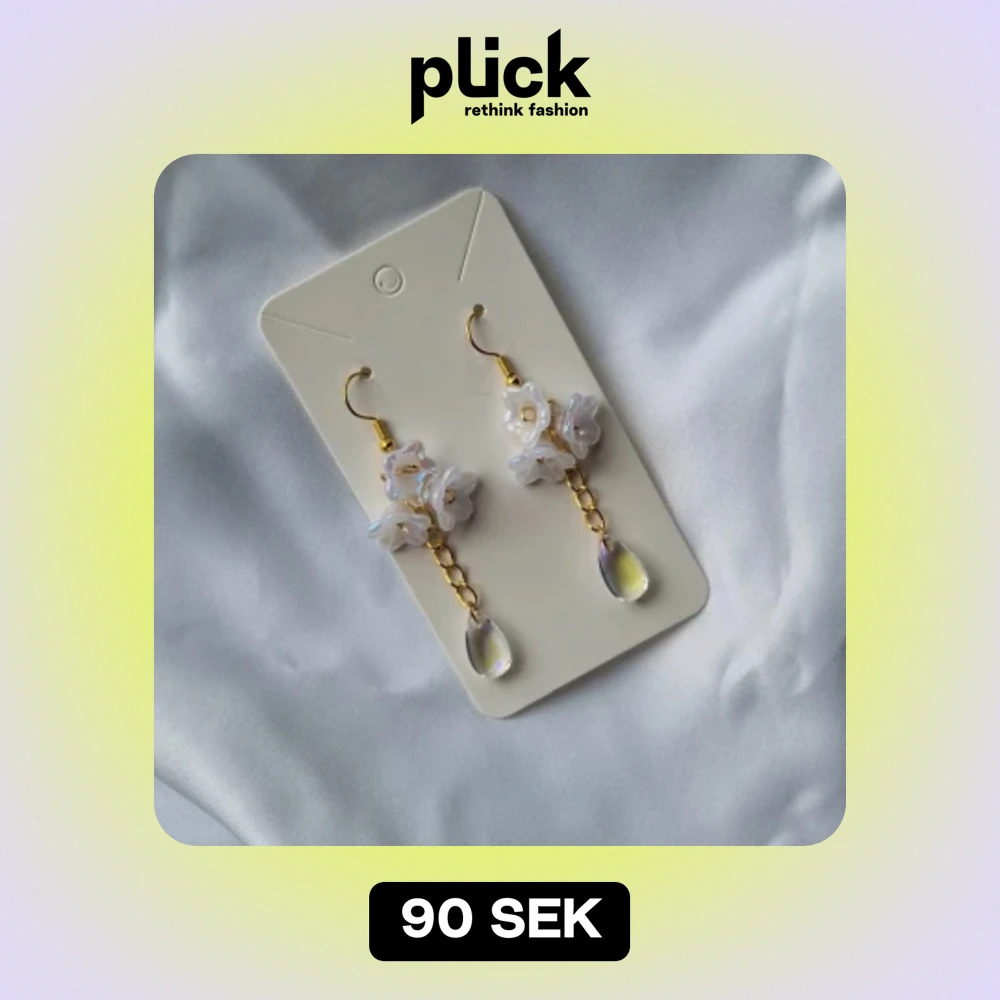 Dessa eleganta örhängen passar perfekt för att upphöja dina outfits eller som en gåva till en vän. Ploppar ingår. Material: Guldfärgad metall, blomsterpärlor, vattendrops-pärlor, bakstycken Alla beställningar från oss kommer fint paketerade 🤍