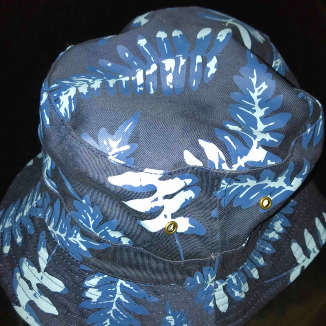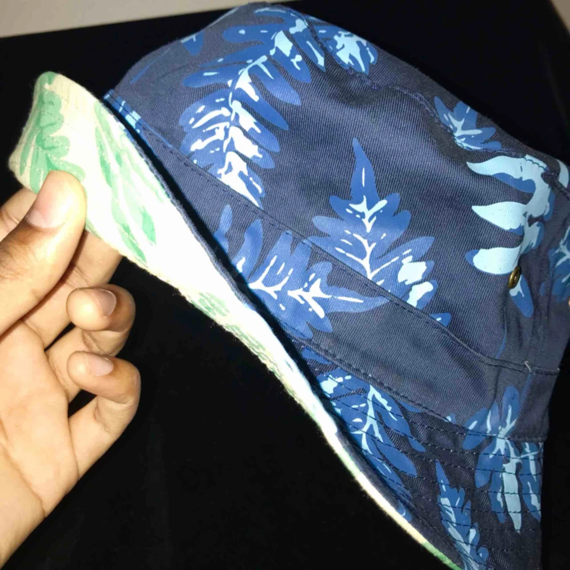Bucket-hat som kan vändas ut och in för olika mönster. Aldrig använd.